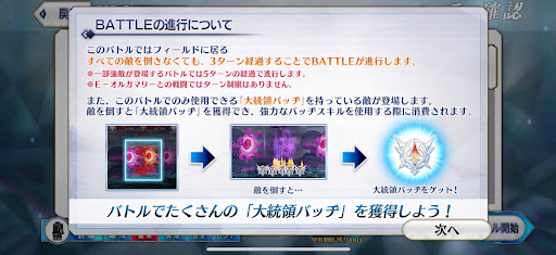 | 一部エネミーは「大統領バッヂ」所持攻撃力15〜30%アップ&毎ターンチャージ1増加倒すと大統領バッヂドロップ |