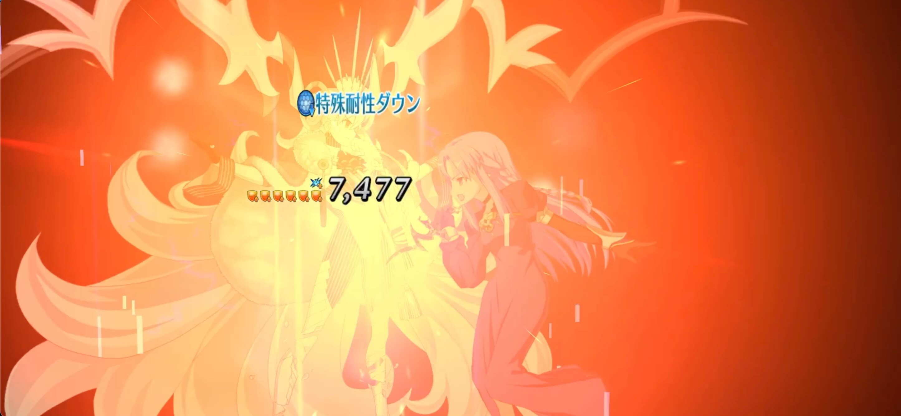 あとは、高倍率のNPチャージ持ち攻撃宝具サーヴァントで殴るだけ。実際の攻略では、パラケルススのアペンドスキル2がLv1のままという痛恨のミスで、攻撃宝具は2回しか撃ててません。それでもクリアできているので、3回撃てればもっと安定するはずです。