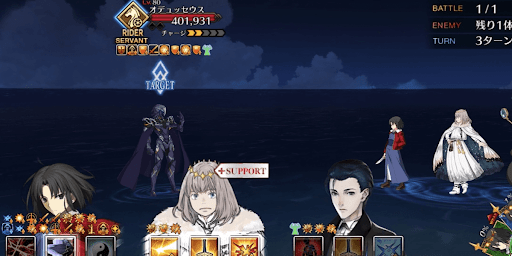 ただし、全体宝具を打たれない場合は、アタッカーだけを生存させる、いわゆるデスチェンジがしにくい。控えからNPや火力補助要員を出したほうが速攻をかけやすいため、オデュッセウスには行動させよう。