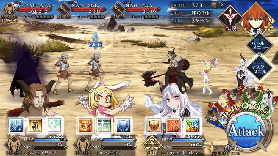フレンドからアタッカーを借りるならば、宝具を撃ちやすい「ロムルスクィリヌス(ランサー)」や「アルジュナオルタ(バーサーカー)」などがおすすめだ。
