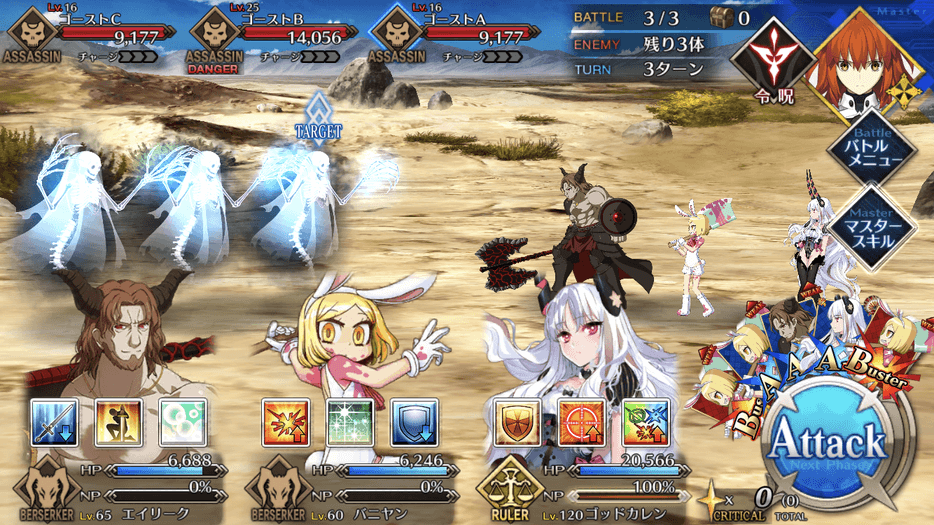 出現するエネミーはアサシンのみなので、クラス相性を突けるキャスターを編成して攻略しよう。低レアならスキルで高倍率NPチャージが可能な「パラケルスス」や「アヴィケブロン」がおすすめだ。