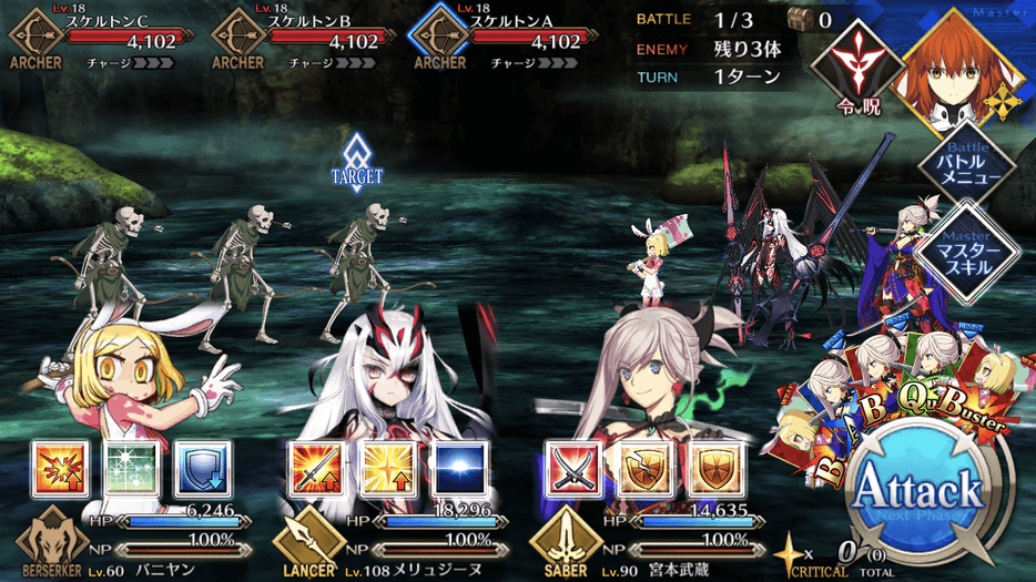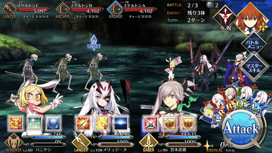 出現するエネミーはアーチャーが多いため、クラス相性を突けるランサーを編成して攻略しよう。道中にランサーエネミーが1体出現するため、バーサーカーを1騎編成するのも良い。
