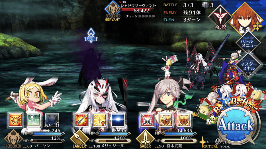 3戦目に出現するエネミーは、バーサーカーのシャドウサーヴァント1騎のみ。単体宝具持ちを1騎以上編成し、道中で宝具の準備を整えると良い。低レアならばNPチャージを持つ「ガレス」などがおすすめだ。