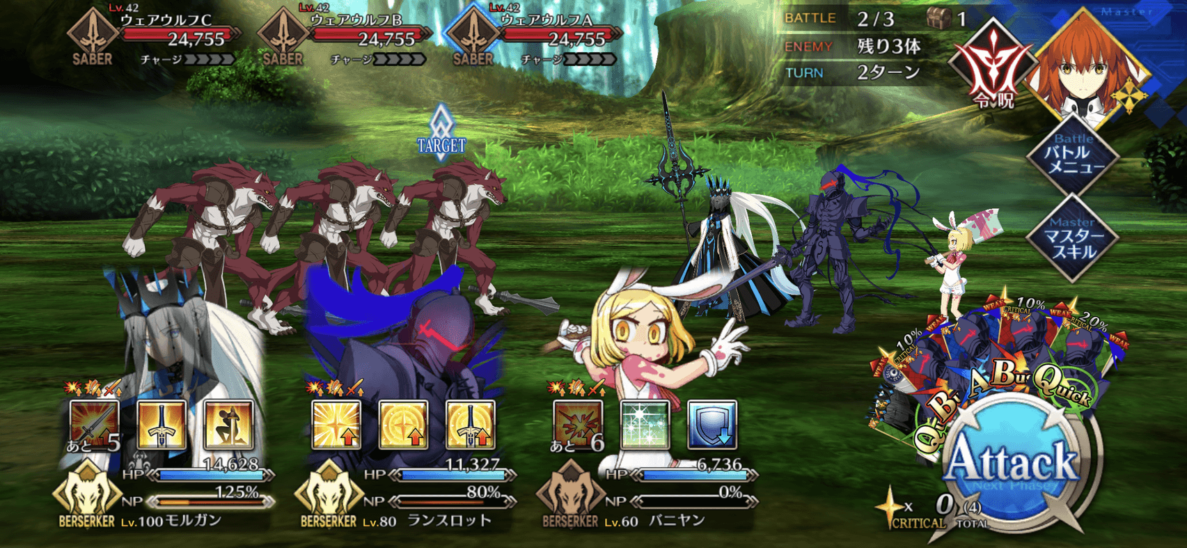 1〜2戦目にセイバー、3戦目はライダーエネミーが出現するため、アーチャーとアサシンのアタッカーをそれぞれ編成すると良い。アサシンのアタッカーは3戦目までは攻撃有利を突けないので、オーダーチェンジなどでアタッカーを入れ替えるのがおすすめだ。