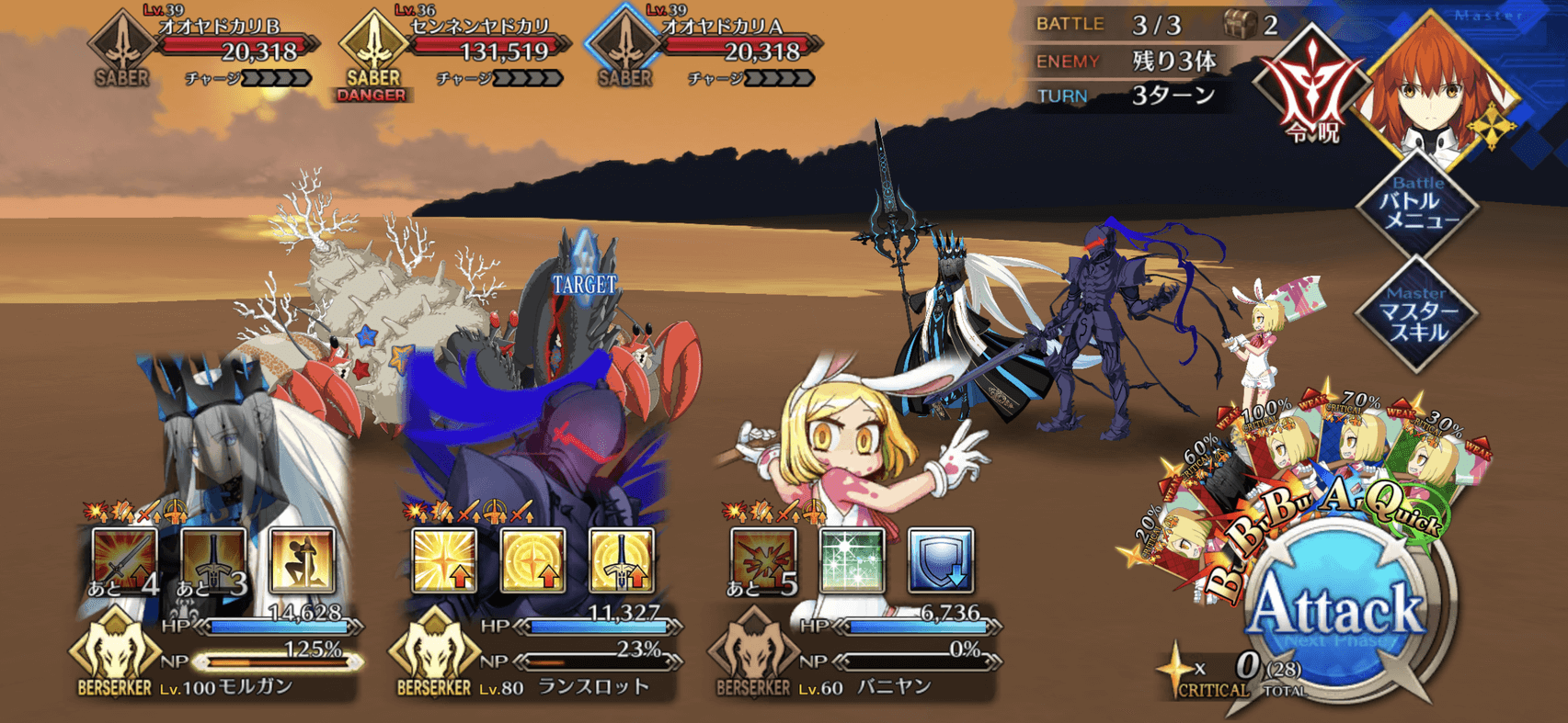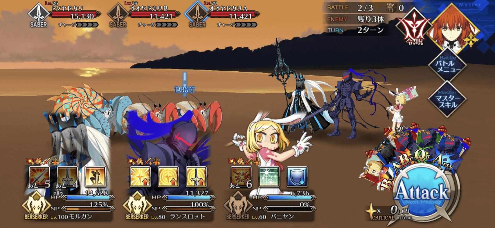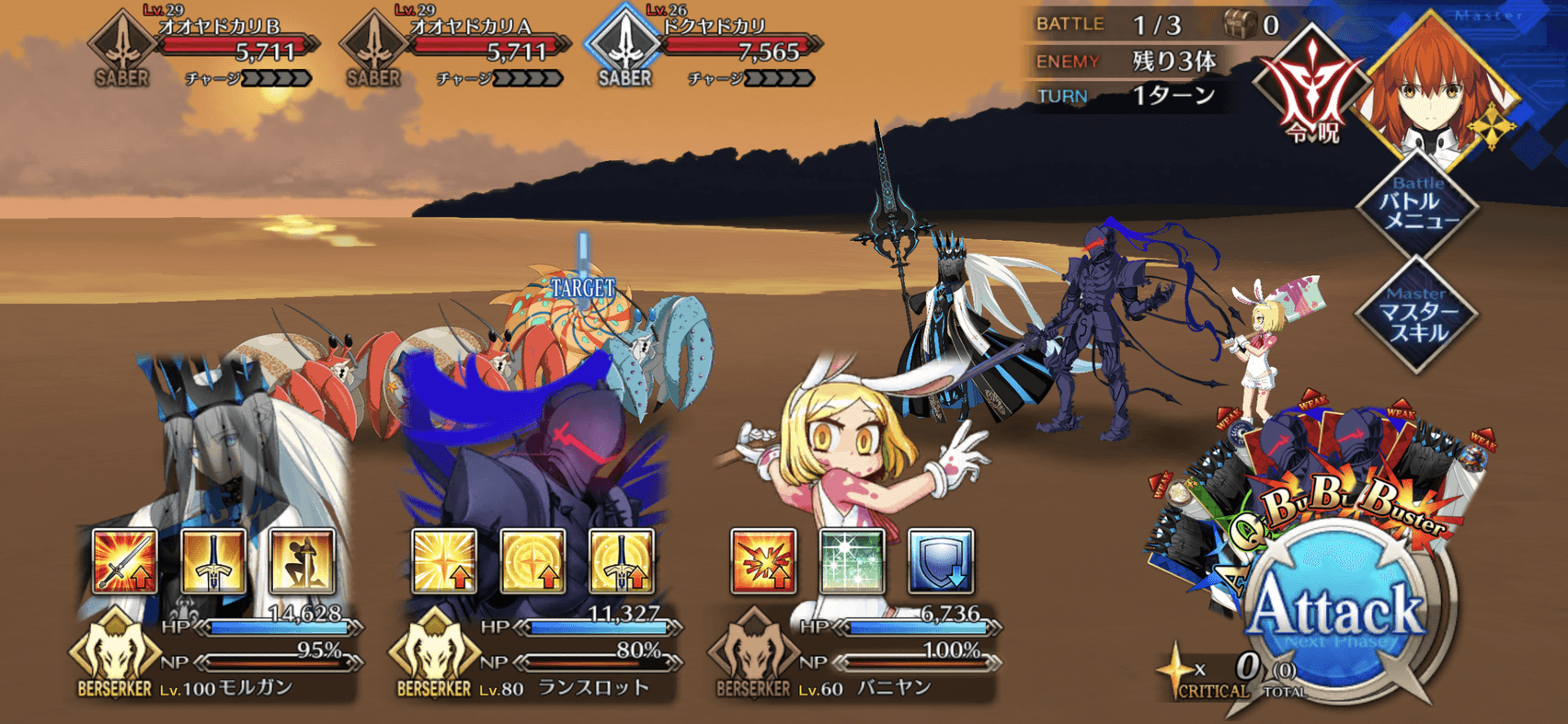 出現する敵はセイバークラスのみなので、アーチャーを中心に編成して挑むのがおすすめ。敵は「魔性」特性を持つため、有効な特攻をもつ「超人オリオン」「源頼光」「俵藤太」などは特におすすめだ。