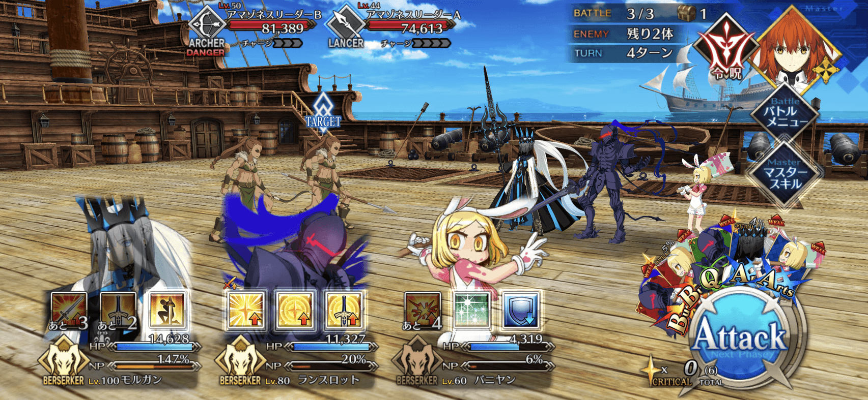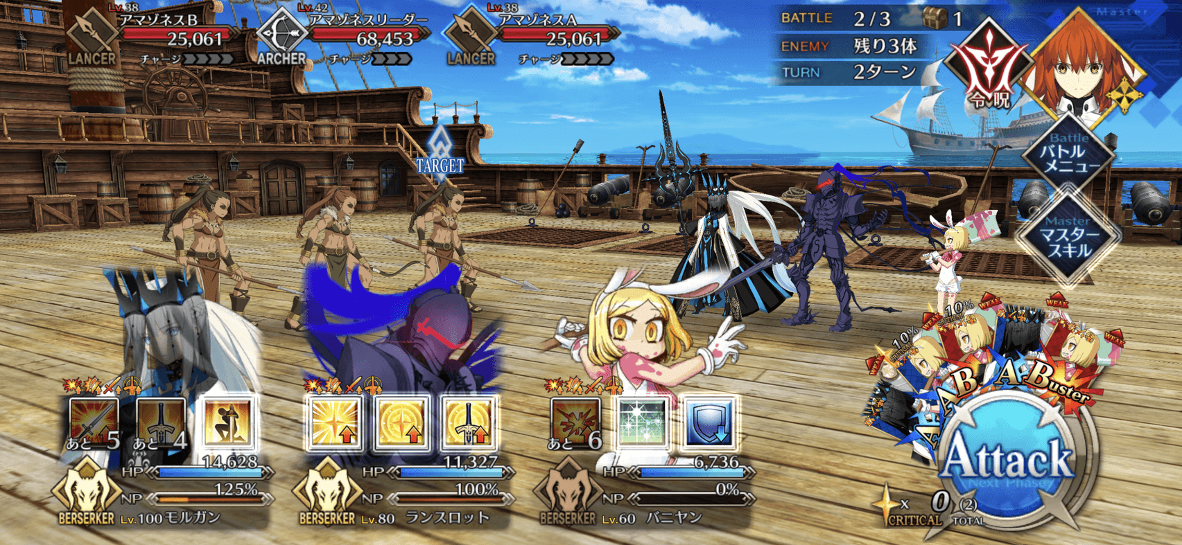 複数クラスの敵が混成で出現するため、全員に攻撃相性有利なバーサーカーをフレンドから借りるのがおすすめ。HPも2万以上のエネミーが多く出現するため、手持ちでも育成済みのバーサーカーを組み込むのがおすすめだ。