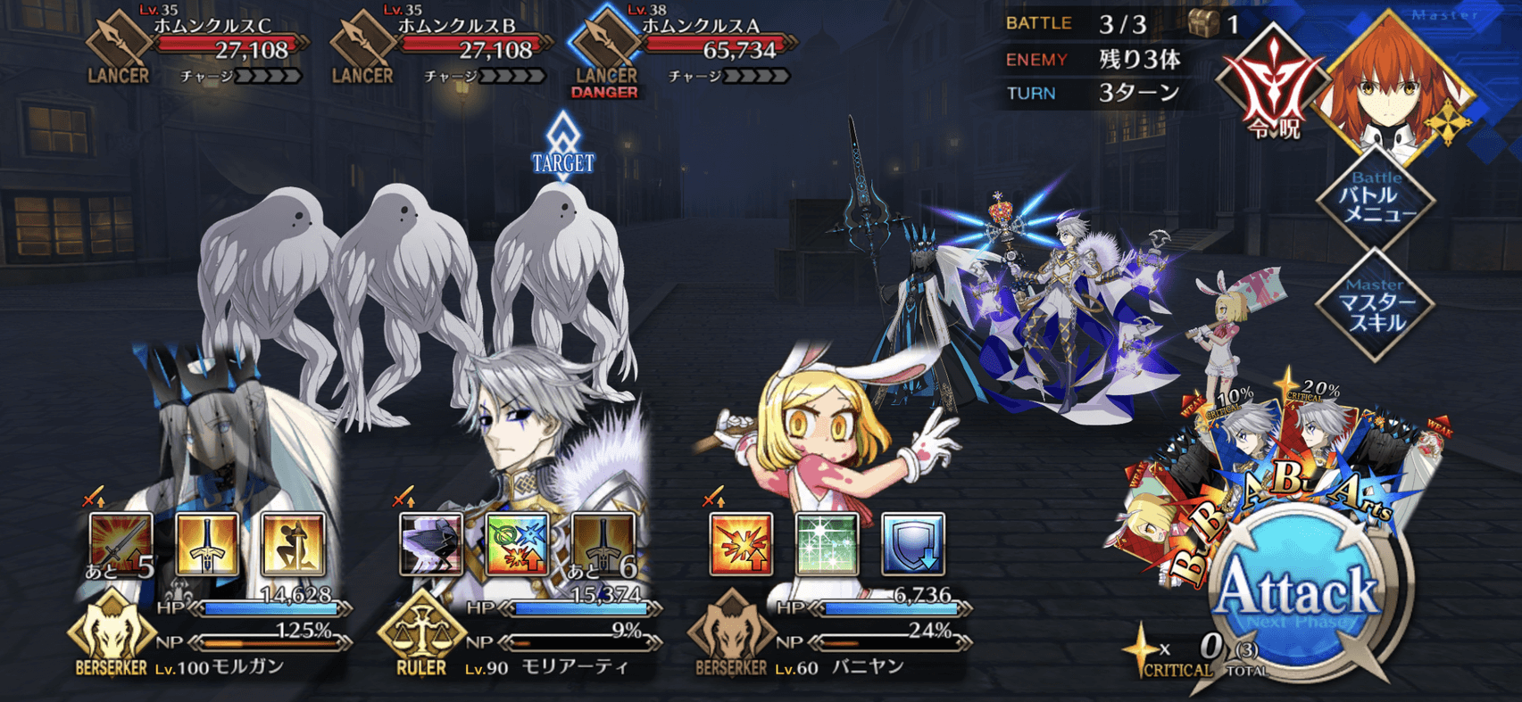 出現するエネミーはランサーのみなので、クラス相性を突けるセイバーを編成して攻略しよう。セイバーは低レアのサーヴァントが少ないので、フレンドから戦力を借りるのも良い。