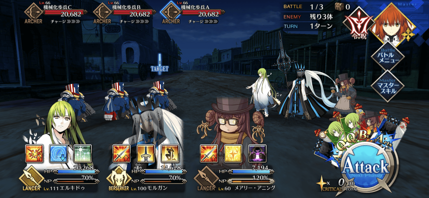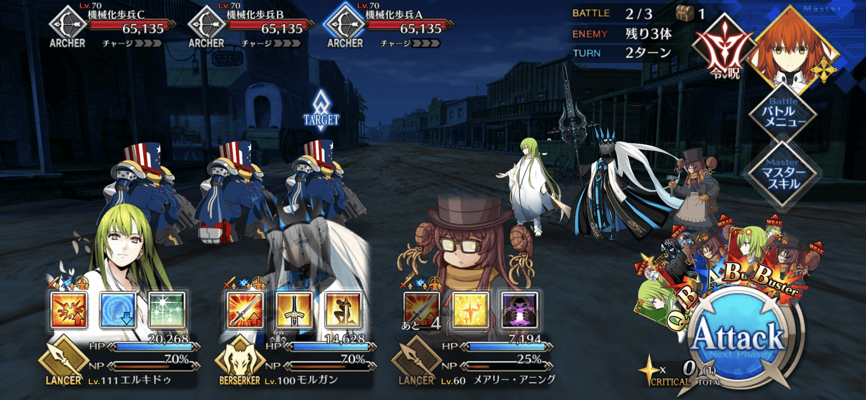 敵はアーチャークラスのみなので、ランサー中心の編成で挑もう。3戦目はHPの高いランサーエネミーが1体のみ出現するため、単体宝具アタッカーも編成に組み込むのがおすすめだ。