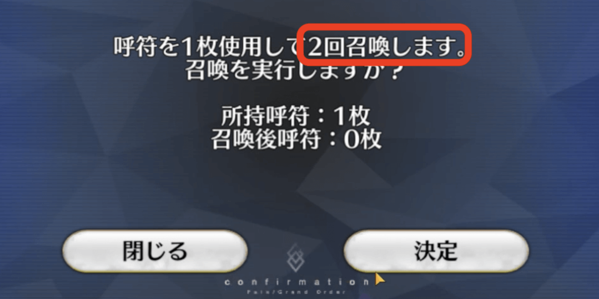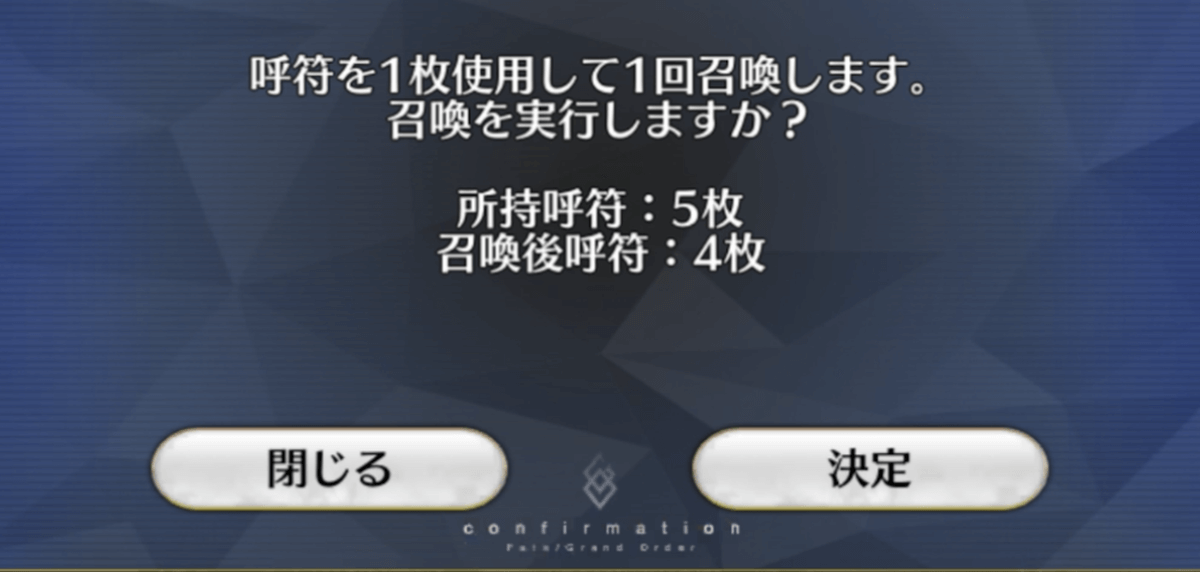 星5の排出確率は1%と低いため、いわゆる「当たり」と呼ばれるサーヴァントを一点狙いで引ける可能性はさらに低い。1%であっても一回のリセマラで数十回引けるならまだしも、11回前後のガチャで狙うには分が悪すぎる確率である。