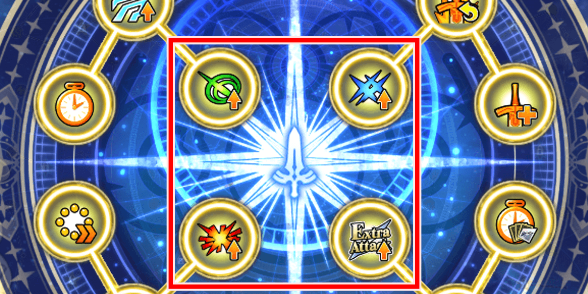 チェイン成立時効果は、HPの割合に応じて最大50%の威力アップを得られる。1ターン目ならほぼ間違いなく50%アップを受けるため、火力を底上げできる。 グランドの宝具色のチェイン成立時効果を最優先で開放しよう。