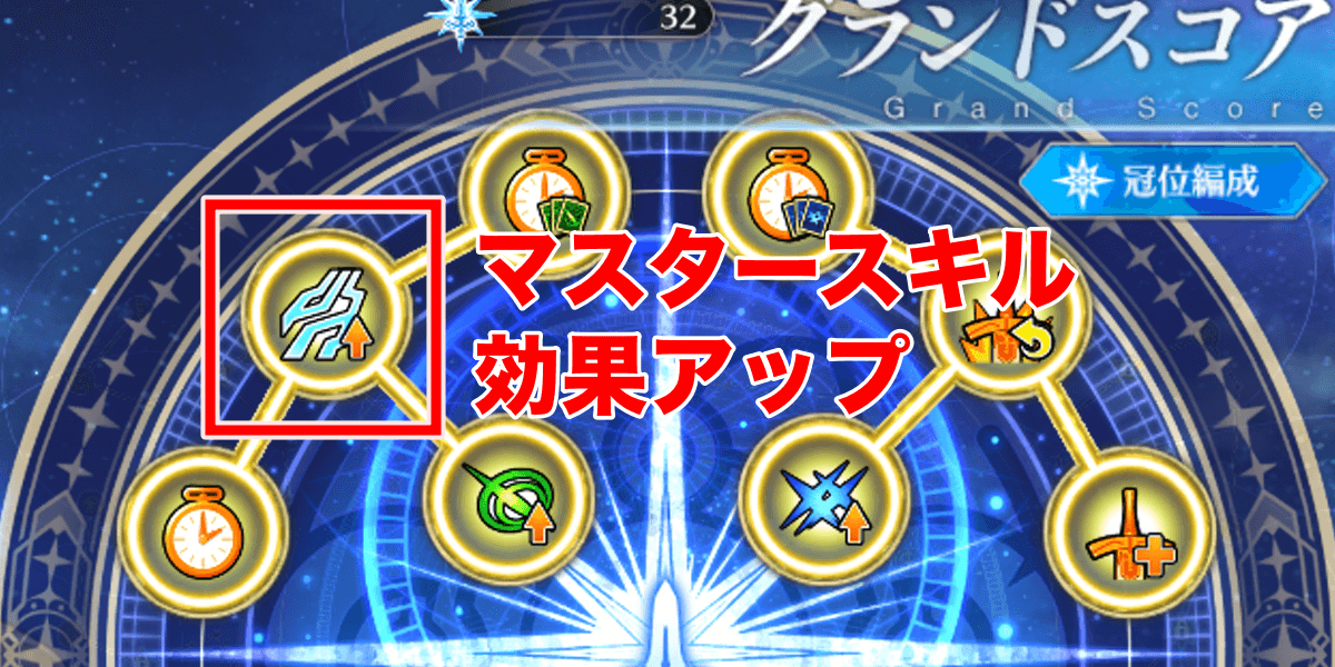 対極共生(彼方)の効果で、80%の確率で各チェイン系スコアのデメリット効果をデメリット扱いのままバフ効果に変換できる。EX2のグランドスコアは自身にデバフを付与するため、対極共生を最優先で解放しよう。