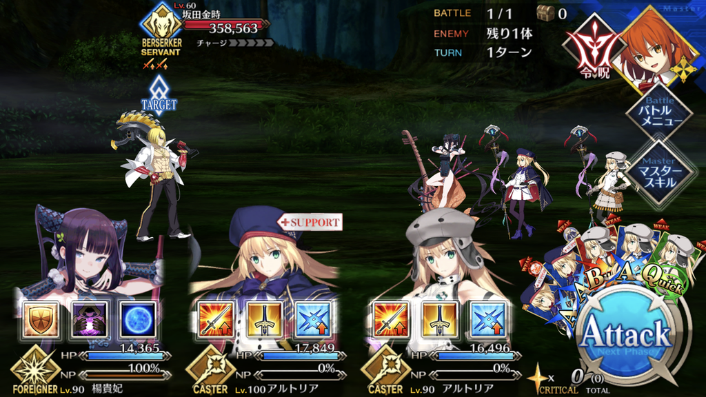 | 戦闘開始時、坂田金時にバフ付与自身の攻撃力アップ(3T)×2 |