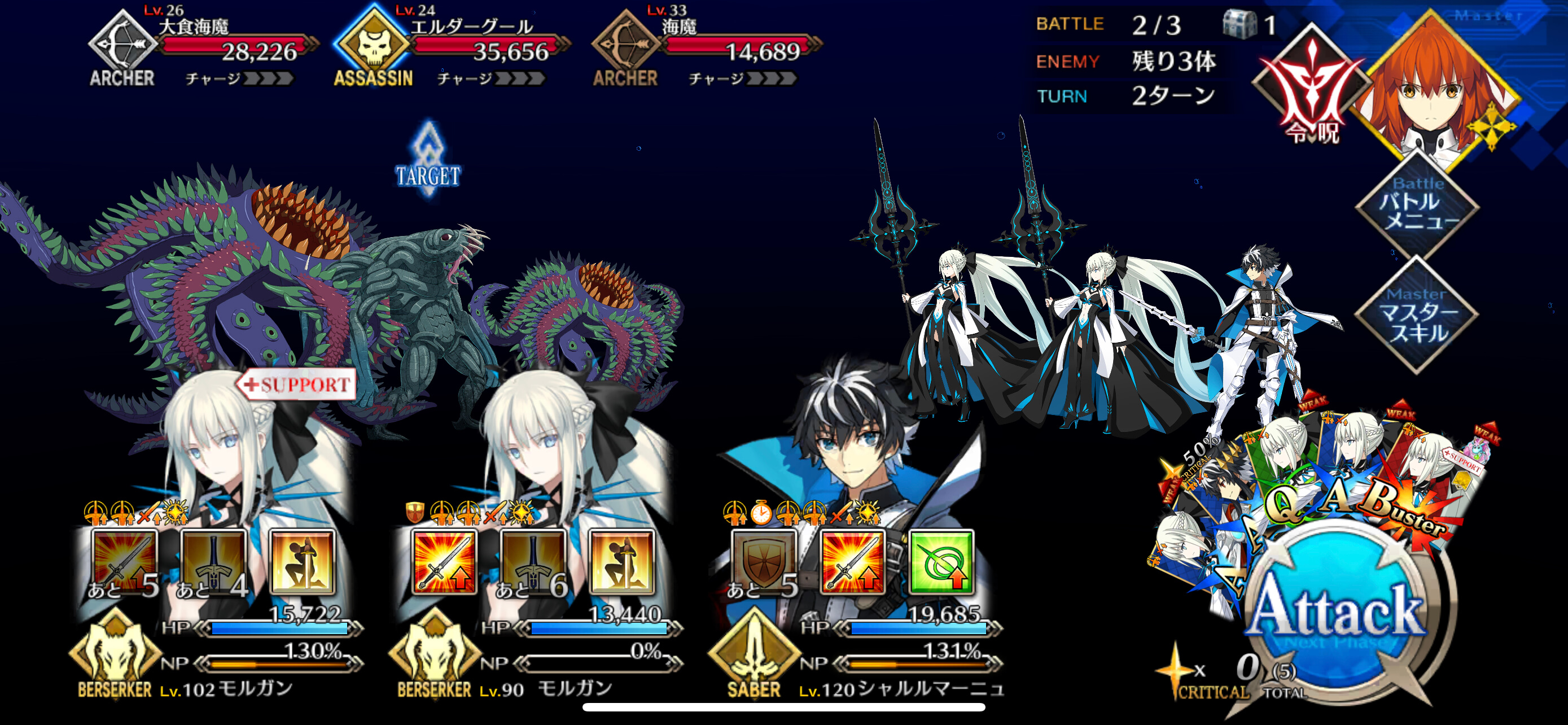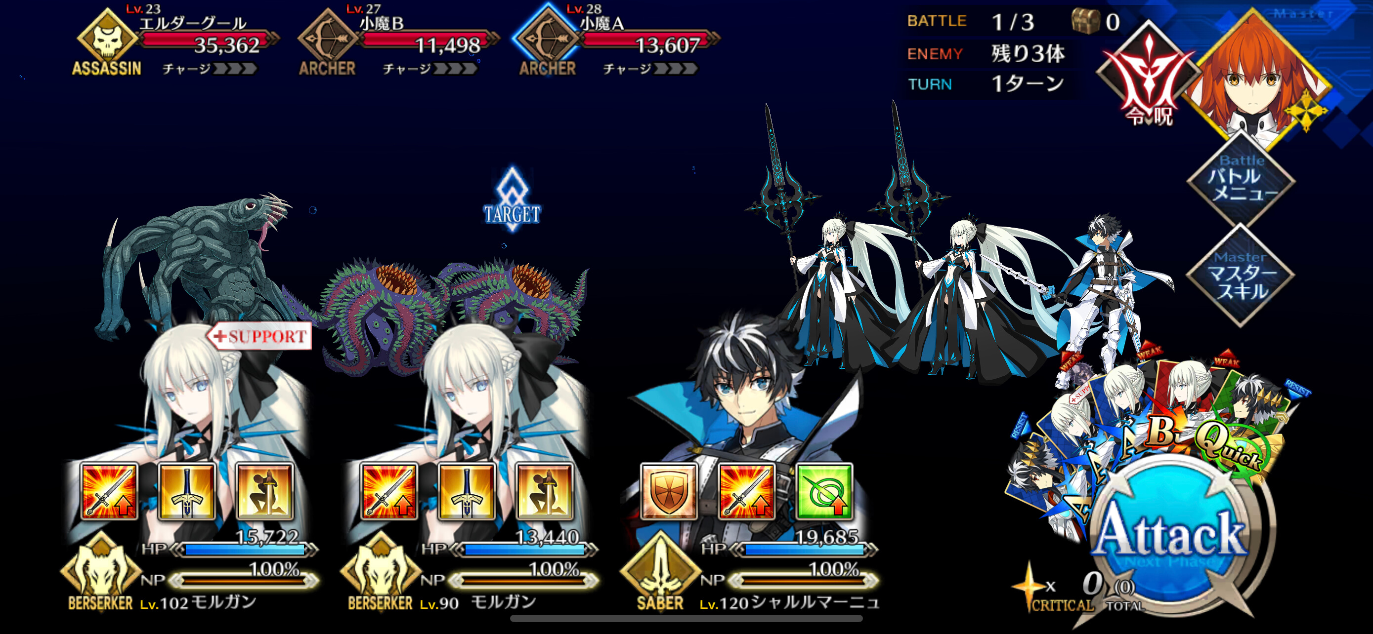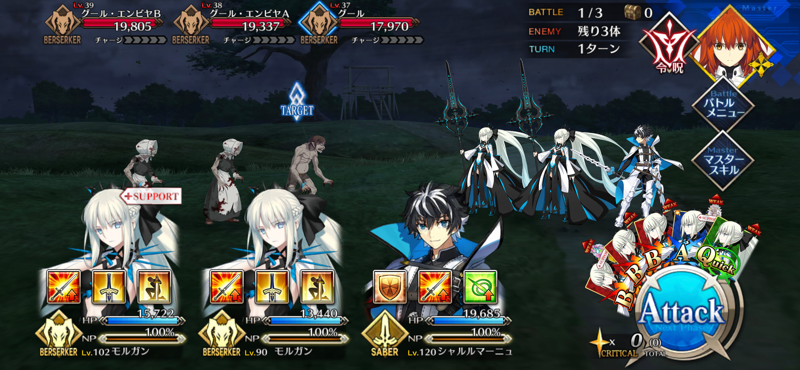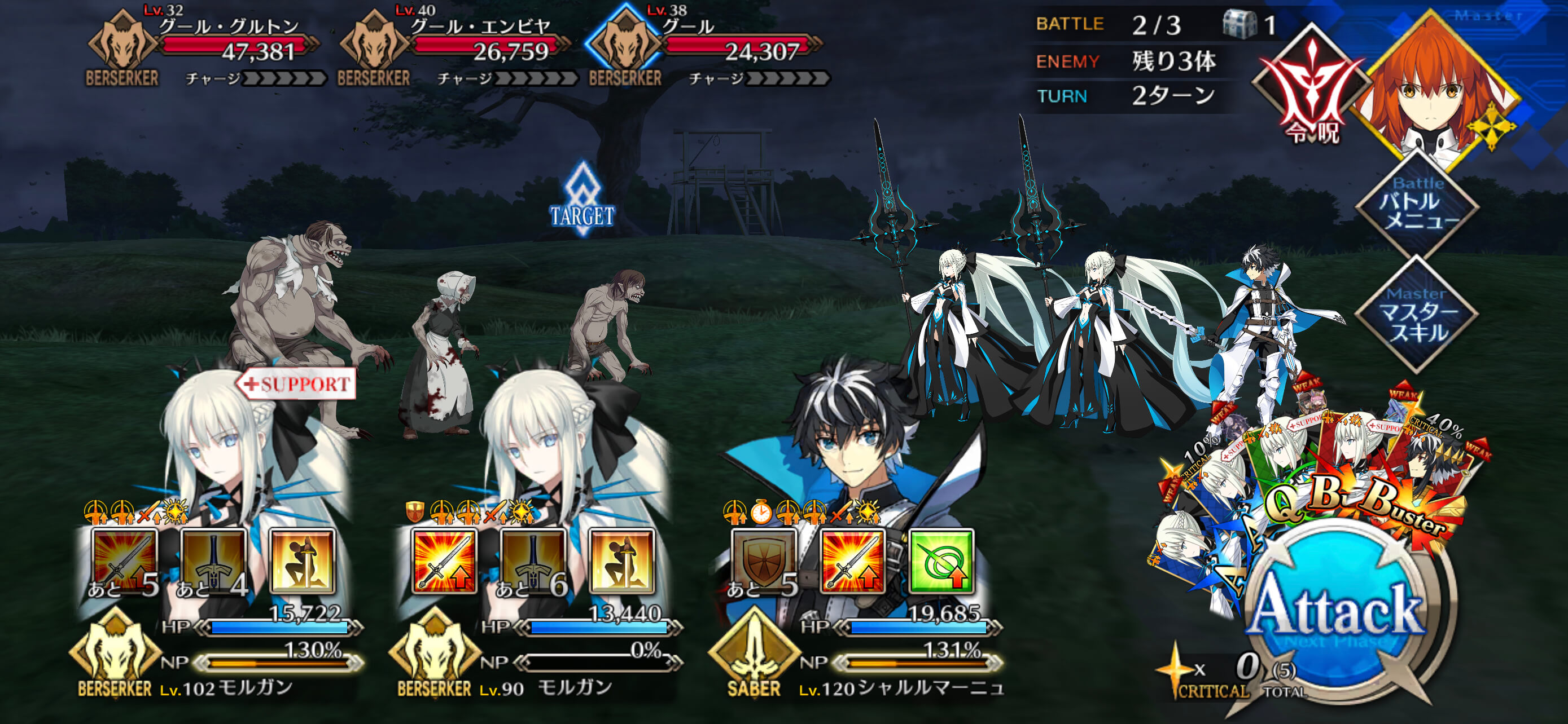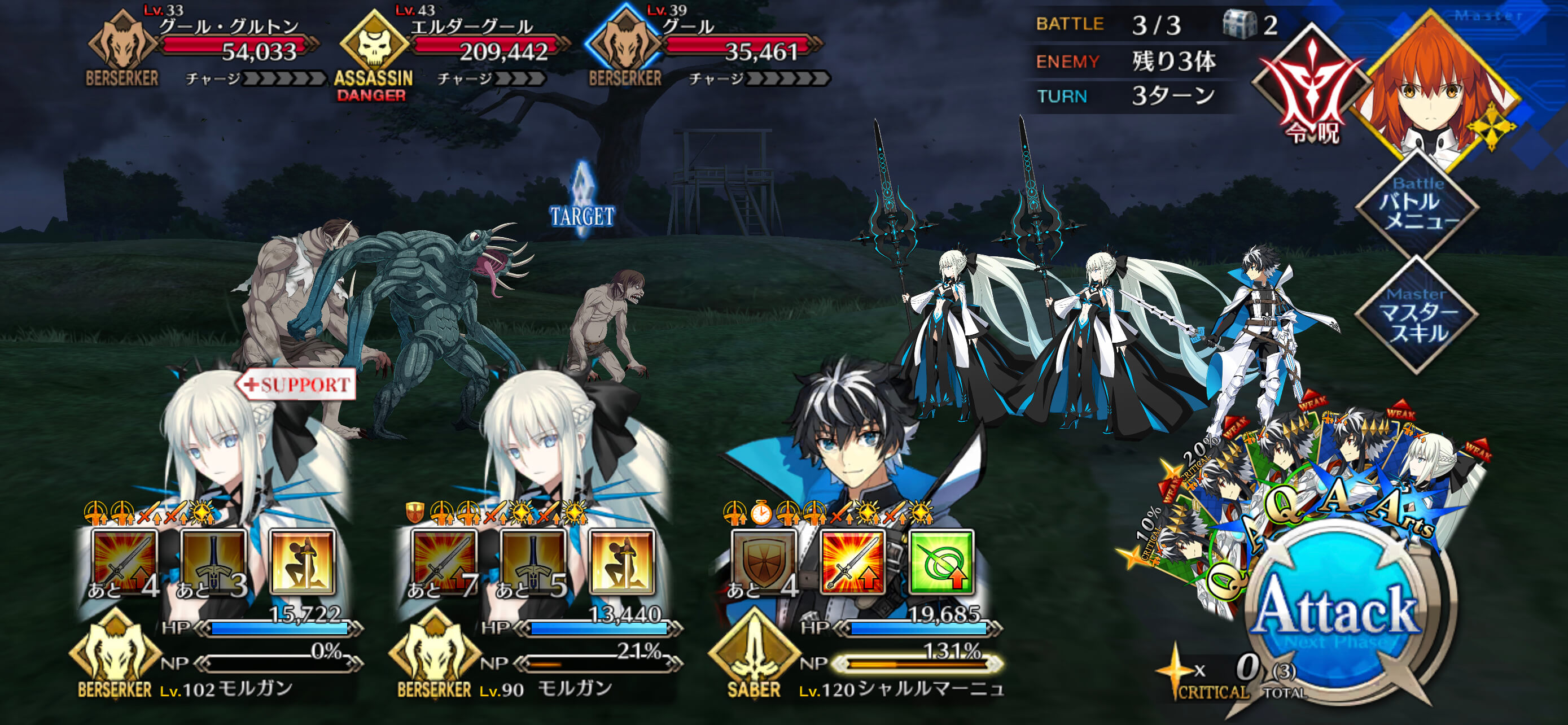 敵はアサシンとバーサーカーのみなので、相性有利の全体攻撃宝具持ちキャスターで一掃しよう。エルダーグールはHPが高いため、一撃で倒すなら火力バフを持つサポーターや特攻アタッカーを編成しよう。