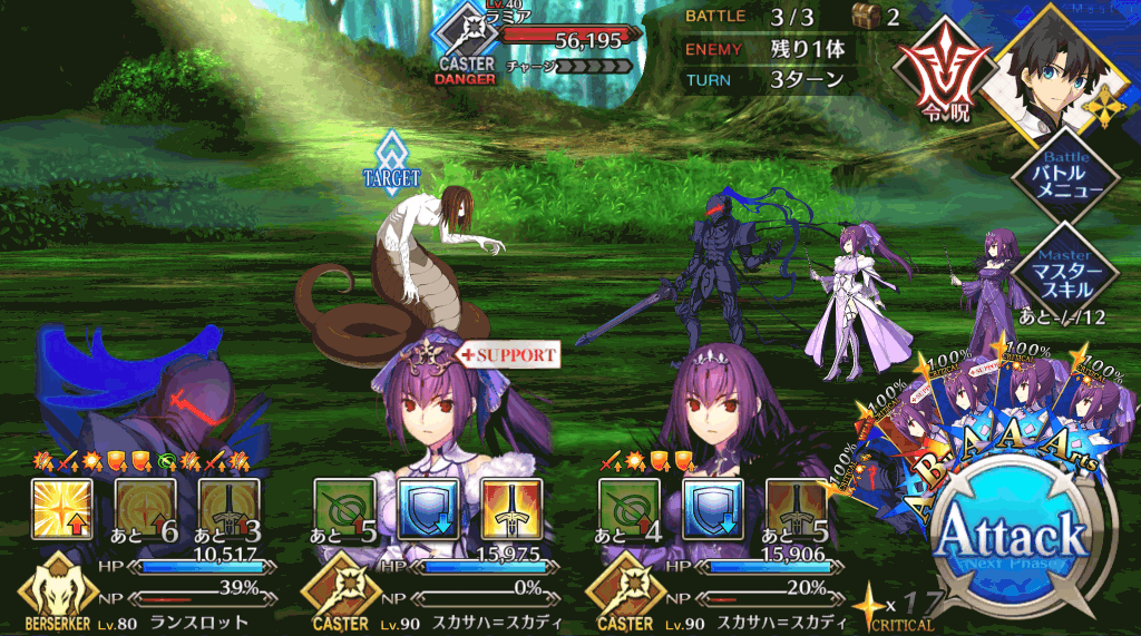 敵は全てライダーなので、アサシン中心の編成がおすすめだ。中でも全体宝具持ちが育っているなら、道中の短縮に役立つ。