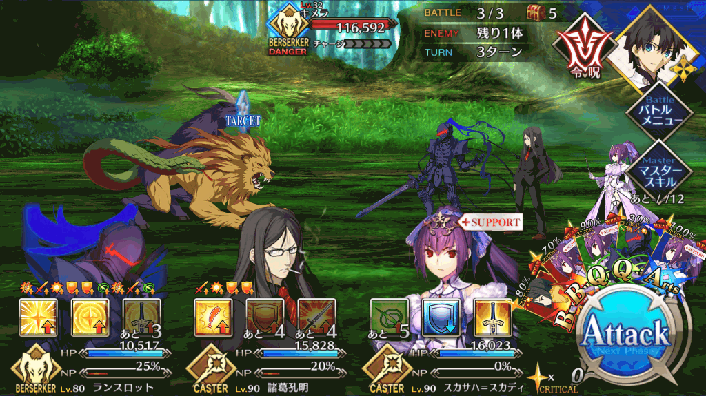 エネミークラスがバラけて戦いづらいので、バーサーカークラスのアタッカーを使おう。1~2体をアタッカーとして使用し、残り1枠で防御アップやターゲット集中を使って耐久性を維持するのがおすすめだ。