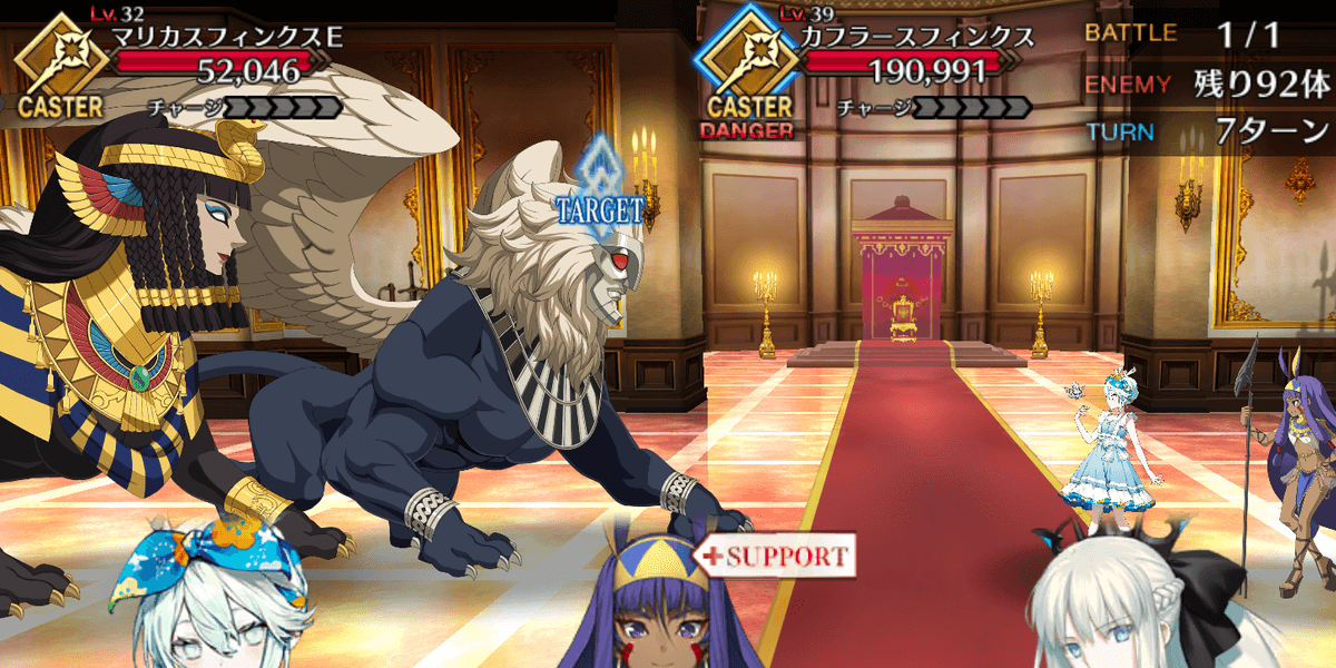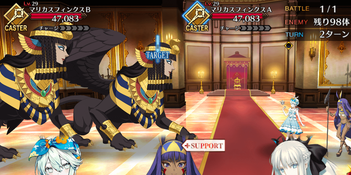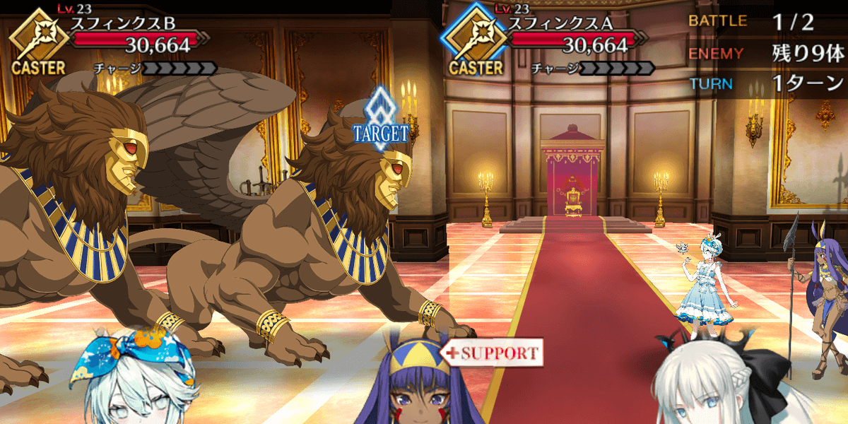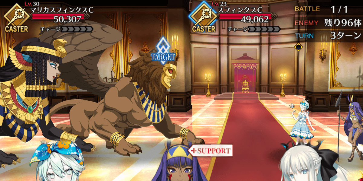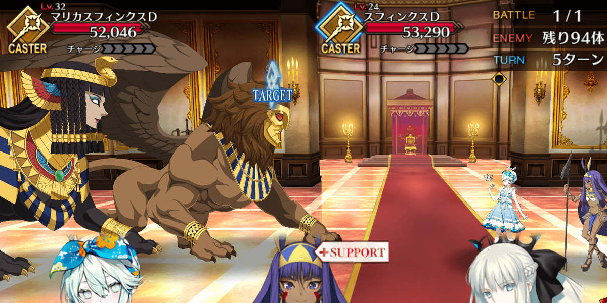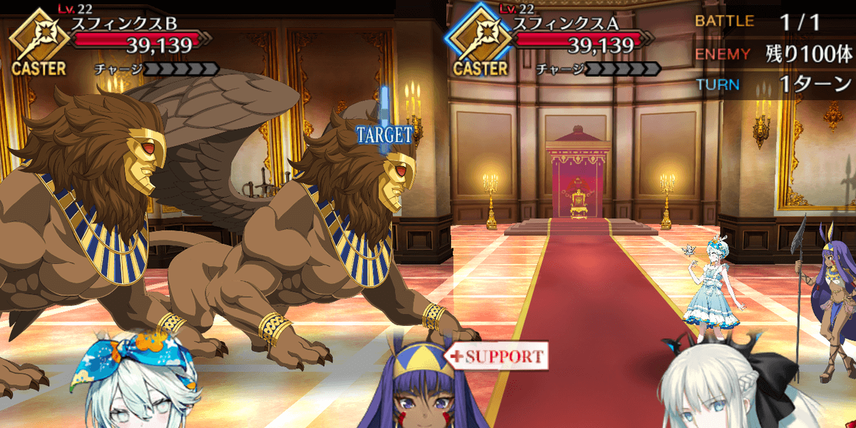 | ・カフラースフィンクスを倒せば終了 ・合計100体のスフィンクスが出現 ・サポートはNPCニトクリス固定 |