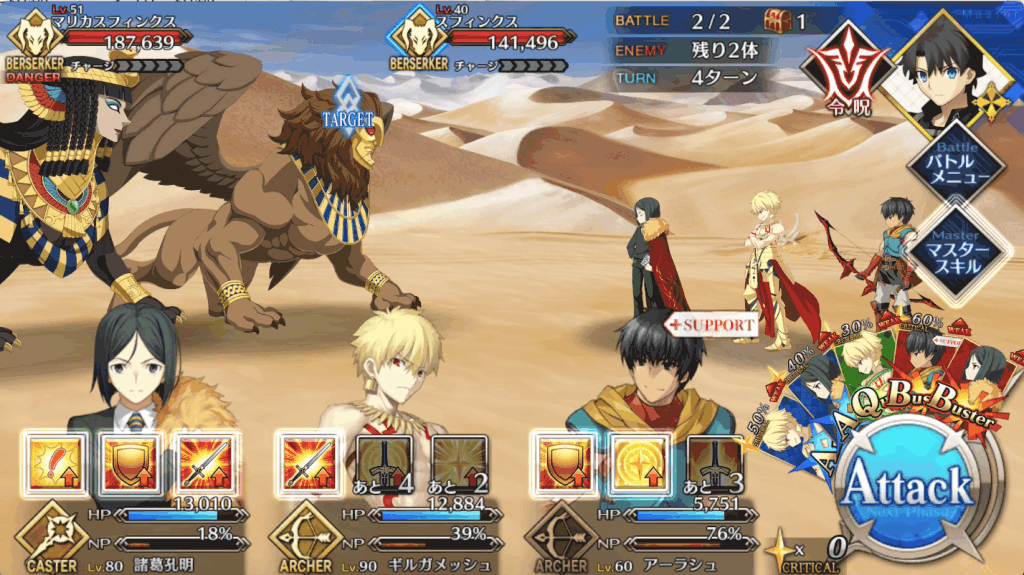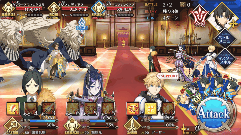 敵はライダー、アサシン、バーサーカーの混成編成のため、アルターエゴのアタッカーを編成するのがおすすめ。ライダーであるオジマンディアスのHPが多いため、アサシンを中心に編成するのもいい。