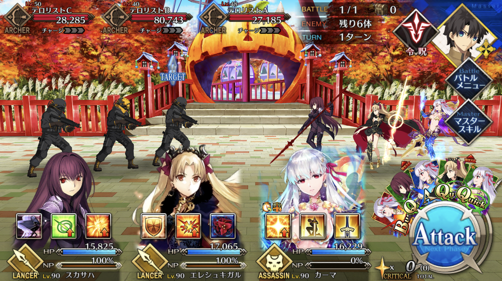 | 戦闘開始時、カーマに永続解除不可バフ付与毎ターン自身のスキルCTを1進める<NP獲得量アップ |