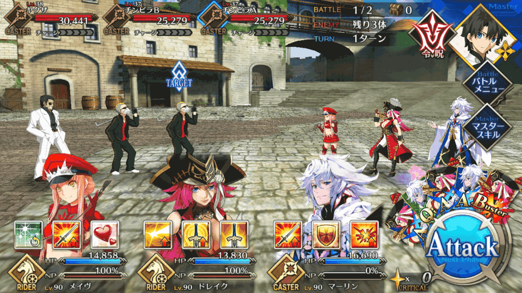 BATTLE1にはライダーのエネミーが3体出現する。ワイバーン型のエネミーであり、クリティカルが強烈なため、アサシンを1体用意して迅速に突破を図ろう。