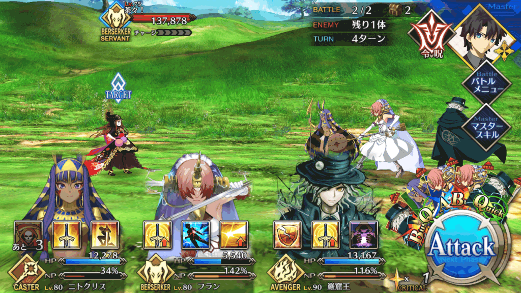 敵のスキル「人体理解」は、ほとんどのサーヴァントに刺さる[人型]特攻スキルのため、単体宝具アタッカーで早期決着を試みよう。NPチャージのスキルや礼装を駆使しよう。