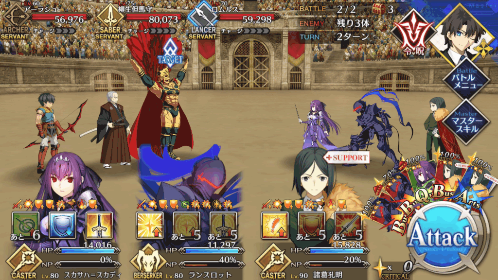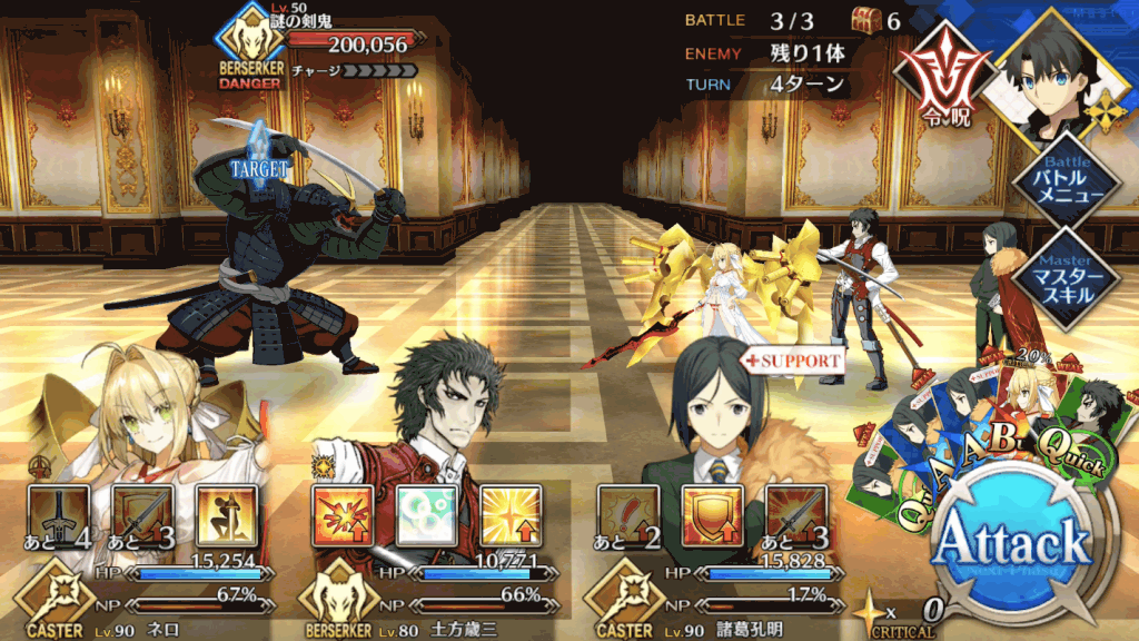 前回と同じくアサシンとバーサーカーのみなので、キャスター中心のパーティを組もう。今回も高HPのバーサーカーいるので、単体宝具のアタッカーも編成するといい。
