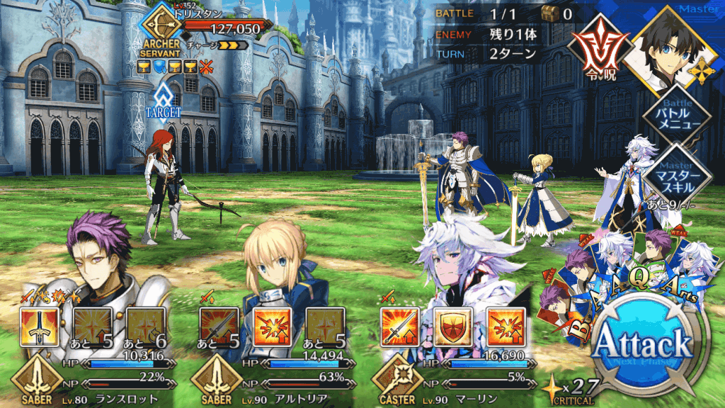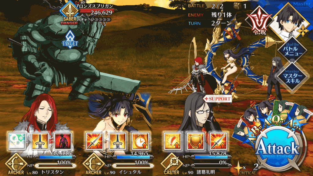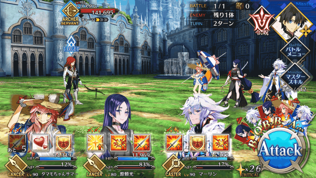 トリスタンはブレイク時に特殊行動を使用しないが、ブレイク後から『ギフト』が2種類追加される。『凄烈』の効果により、こちらのダメージが通りにくくなるため、宝具を用いた短期決戦を仕掛けないと、先にこちらが壊滅する恐れがある。
