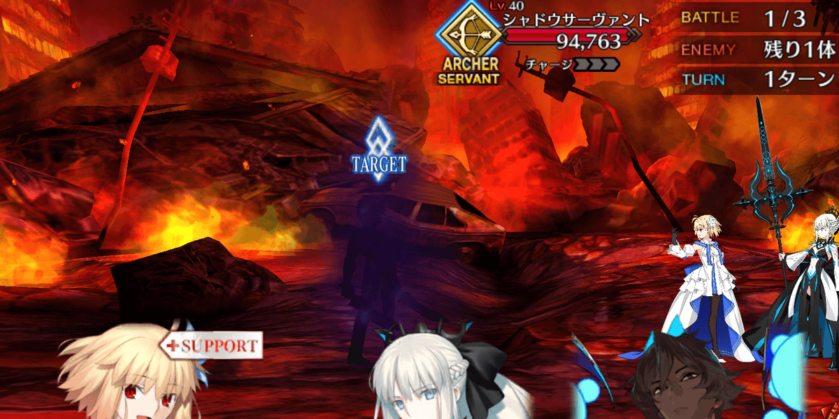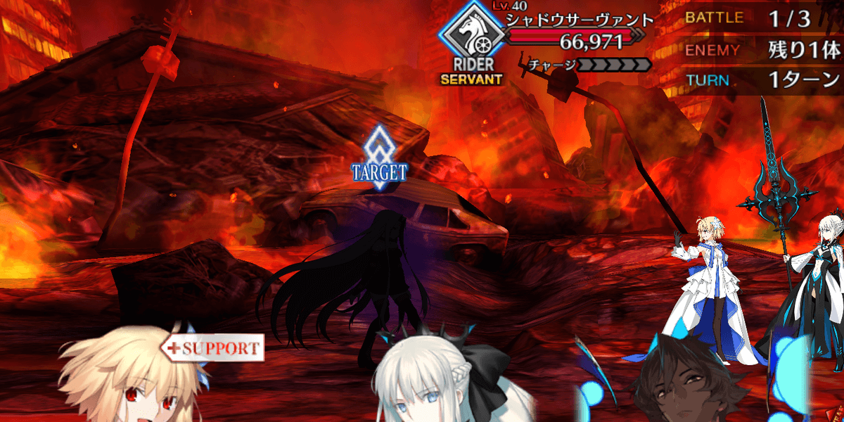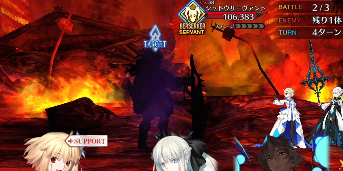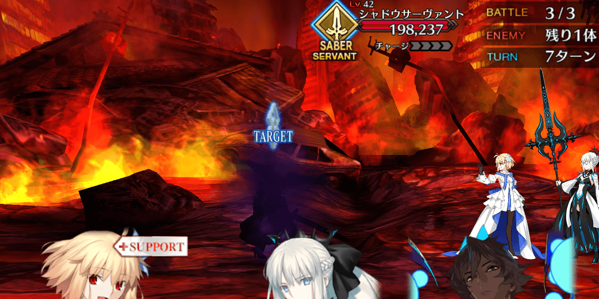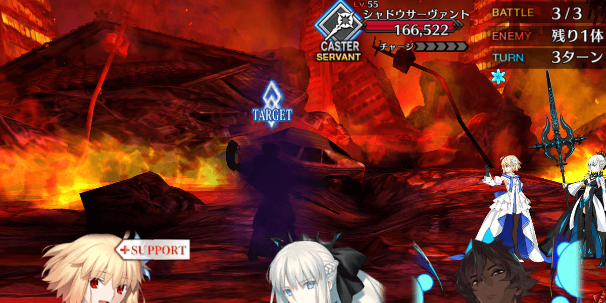 wave1と2はHP約10万で、wave3は約HP20万と前回よりも敵のHPが上昇している。しかし、各waveの敵構成は全てシャドウサーヴァント単体なので、アタッカーには単体宝具持ちのサーヴァントにしよう。