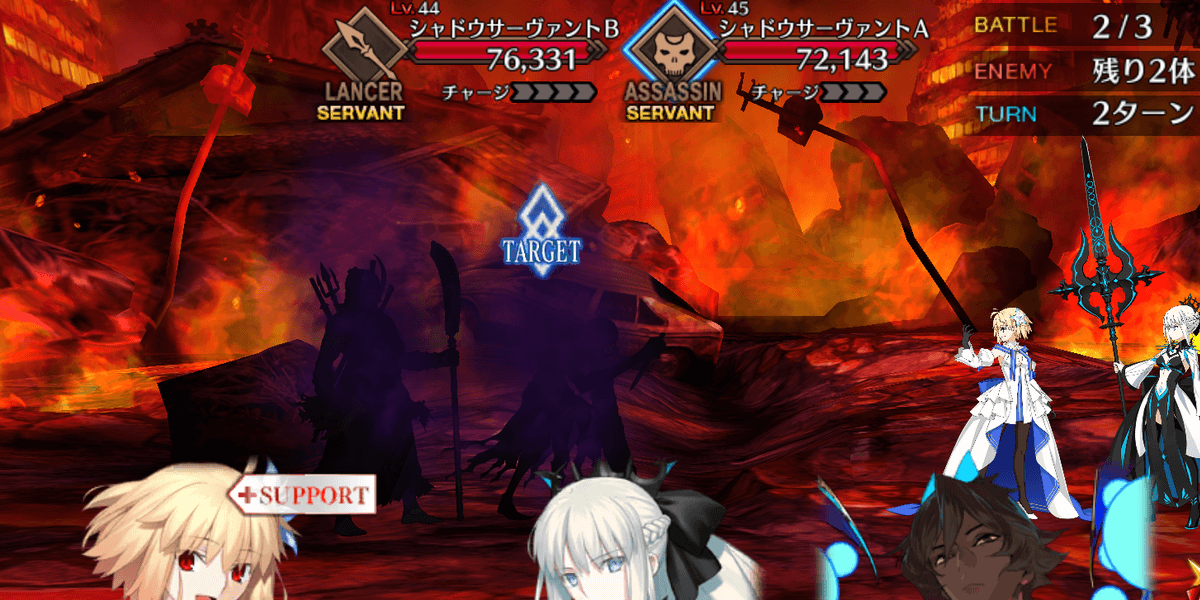 敵の総数こそ少ないものの、全ての敵がHPも多くクラスもバラバラの為対策がし辛い。各クラスに有利な単体宝具アタッカーを組み込んだり、エクストラクラスのサーヴァントを所持している場合は頼ってしまうのも1つの手だ。