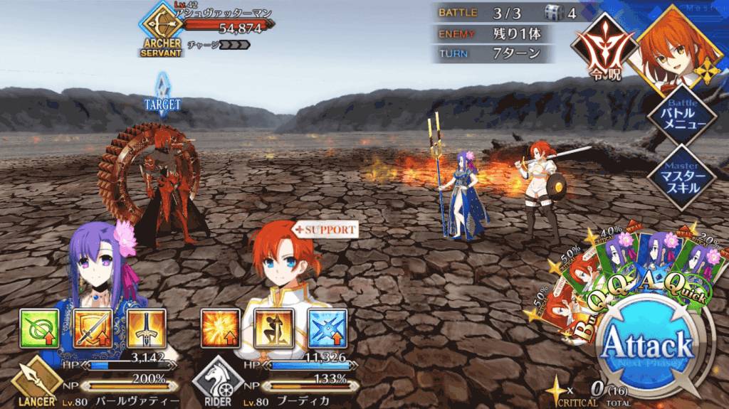 相手のHPは高くないが、互いの不利クラスであるアサシンやセイバーが出現するため、クラス相性を確認しつつ立ち回ろう。