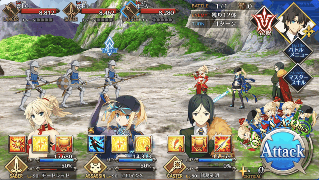 セイバー中心のパーティ編成を組む
