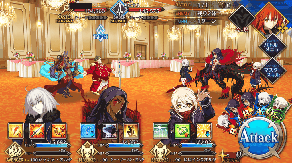 敵が1体かつライダーなので、単体宝具アサシンを中心とした構成で行くのがいい。ただし、敵のHPは25万と多いため、育成が十分でないならばアタッカーだけではなく、サポーターも編成して耐久しつつ攻略するのもおすすめ。