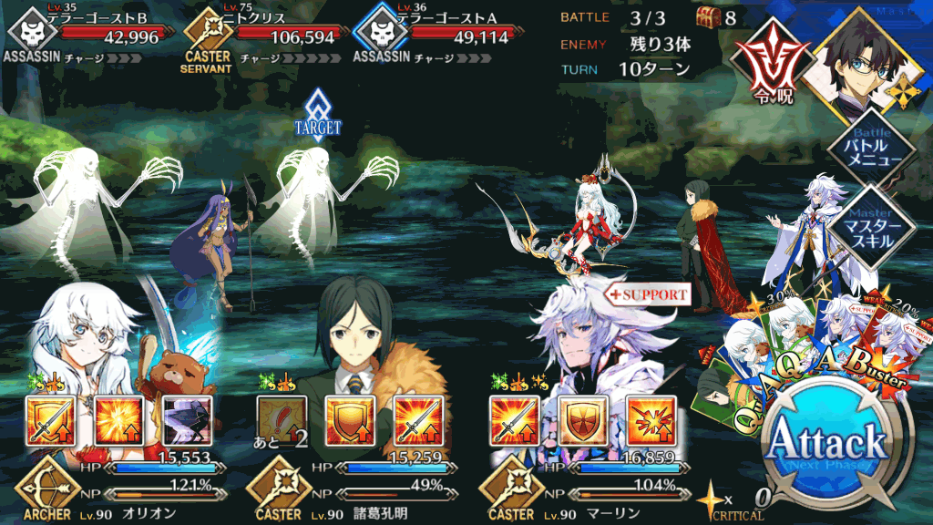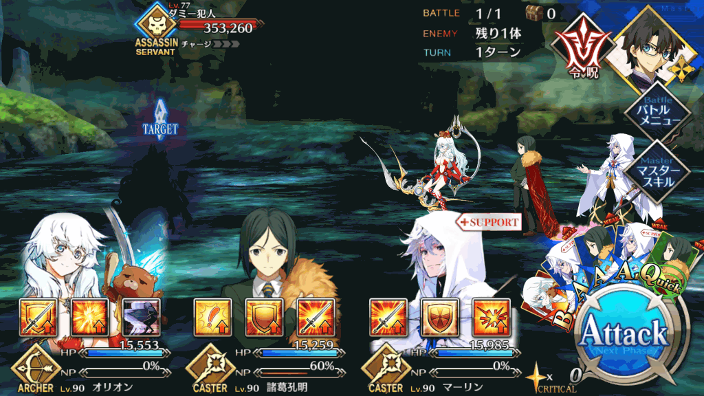 敵はアサシンのみなので、単体宝具キャスターを中心とした構成で行くのがいい。ただし、敵のHPが多いため、育成が十分でないならばアタッカーだけではなく、サポーターも編成して耐久しつつ攻略するのもおすすめ。