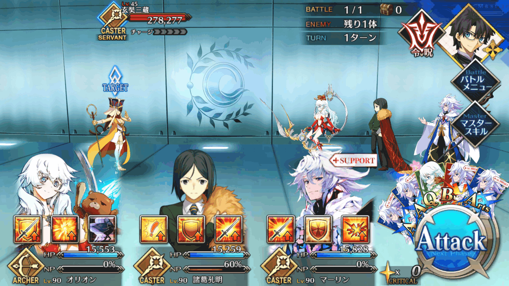 敵はキャスターのみなので、単体宝具ライダーを中心とした構成で行くのがいい。ただし、敵のHPが多いため、育成が十分でないならばアタッカーだけではなく、サポーターも編成して耐久しつつ攻略するのもおすすめ。