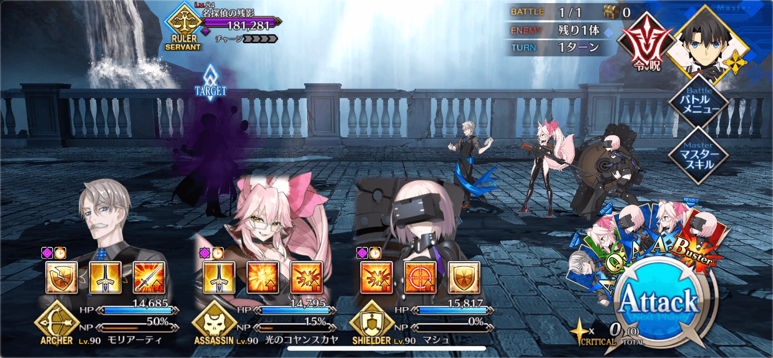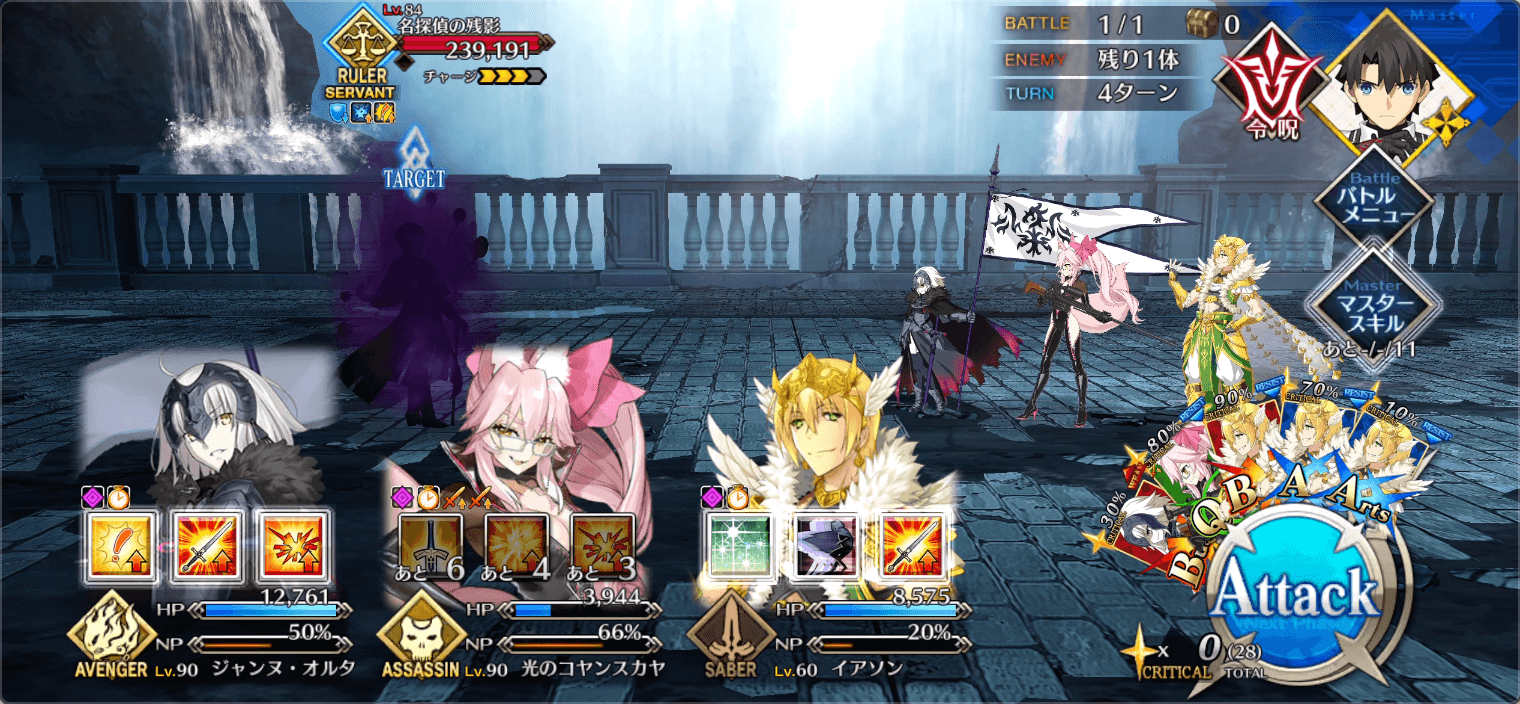 敵はルーラーアタッカー1体であるため、クラス相性有利のアヴェンジャーをアタッカーにすると良い。アヴェンジャーのサーヴァントが居ない場合は、有効な特攻持ちをアタッカーに組み込むと良い。