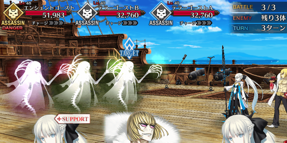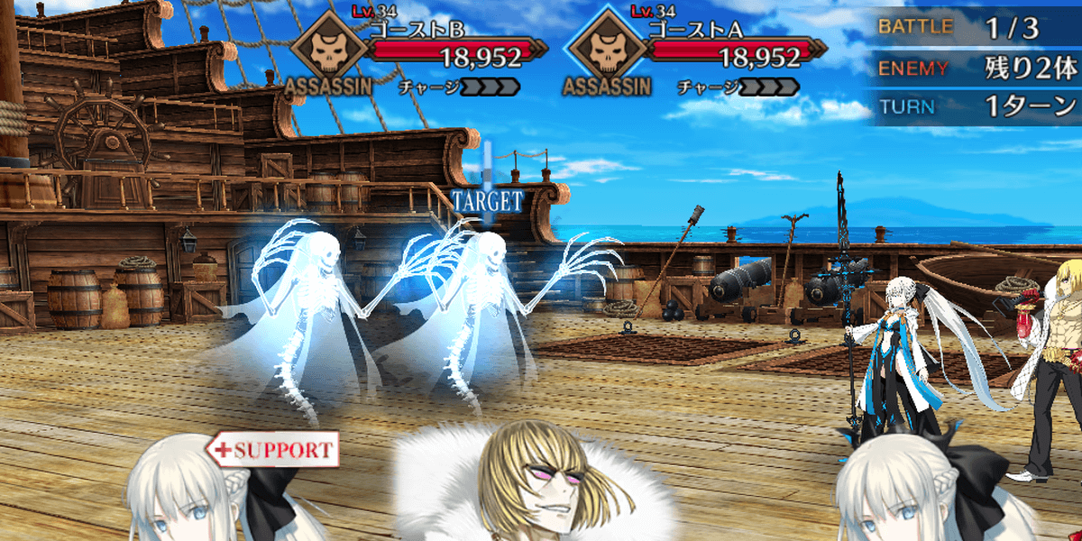 敵はアサシンしか出てこないため、キャスター中心のパーティ構成でいくのがおすすめ。しかし敵のゴーストはNPを減少させるスキルを使ってくるため、NPを溜めきれずにwave3になってしまう場合がある。そのためNPチャージスキルを持ったサーヴァントを使うのも手である。