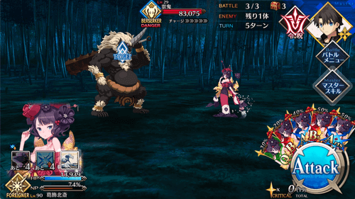| ・編成制限:自前の葛飾北斎のみ ・開始時、自身にバフ付与 ┗毎ターンHP回復、防御アップ(各3T) |