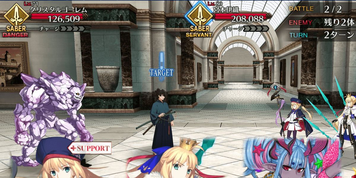 | ・魔力放出(宝石) [A+]→絶対豪運宝石圏 [A] ・1ターン後に自身のカード5枚が選出されるに変化 ・被強化成功率アップ(2T)が追加 |