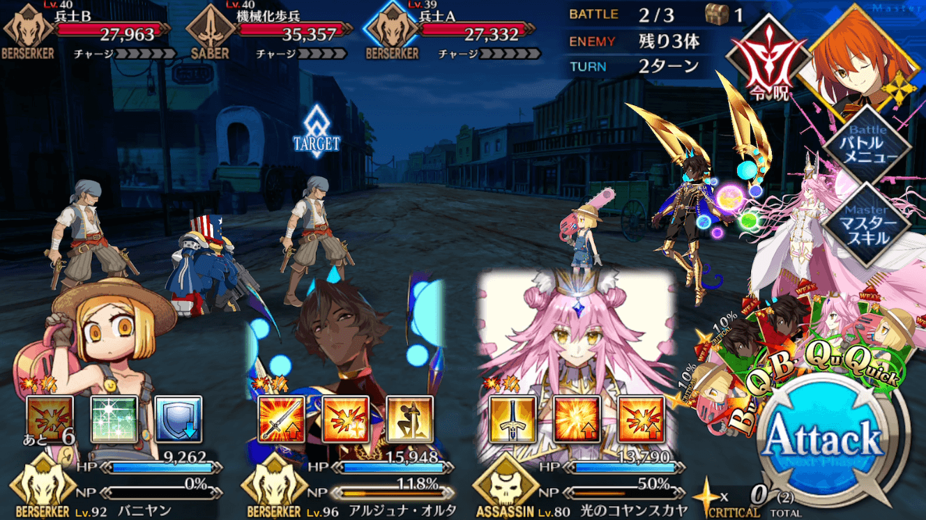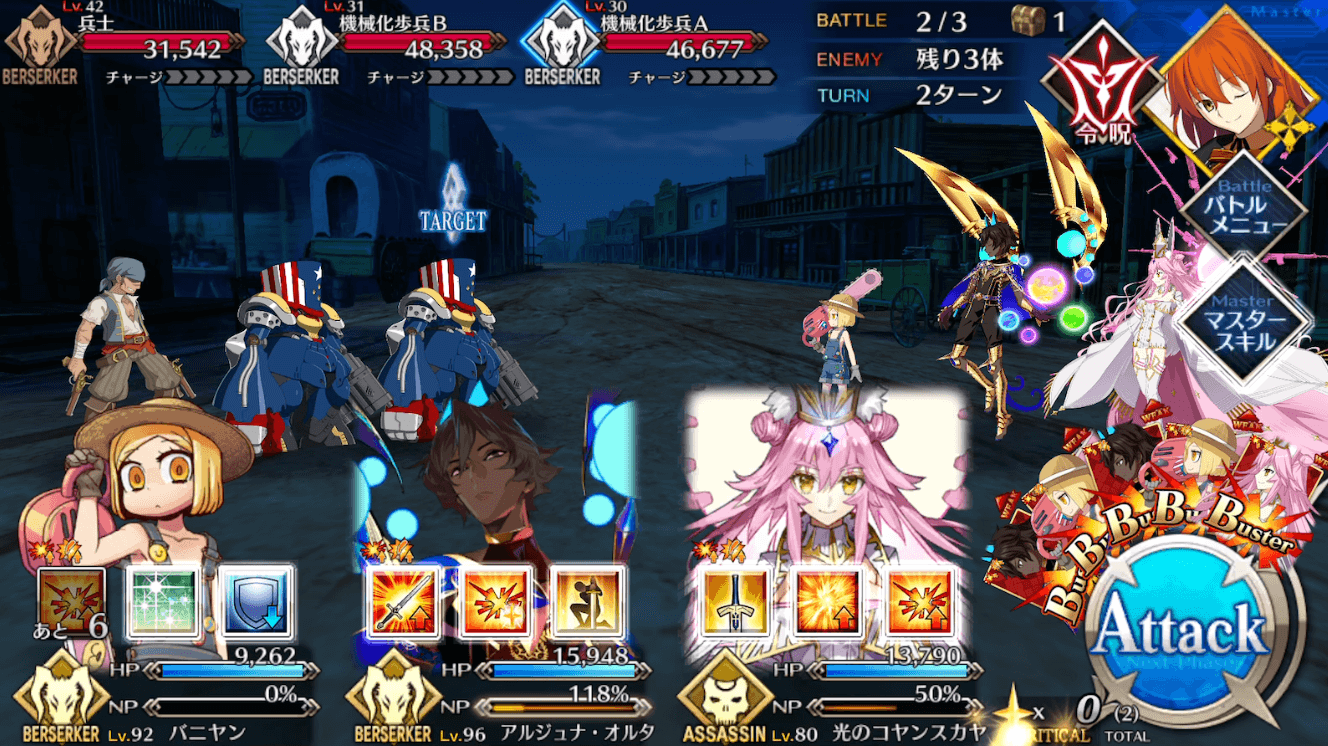 | ・投影魔術[C]→回路接続(違法)[B+] ・カード性能アップ1T→3T/3回 ・NPチャージ追加(20~30%) |