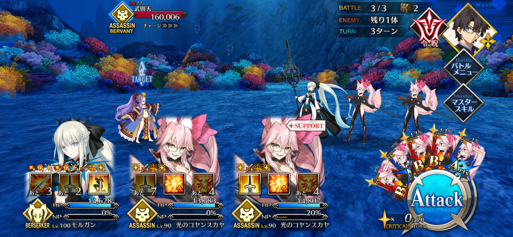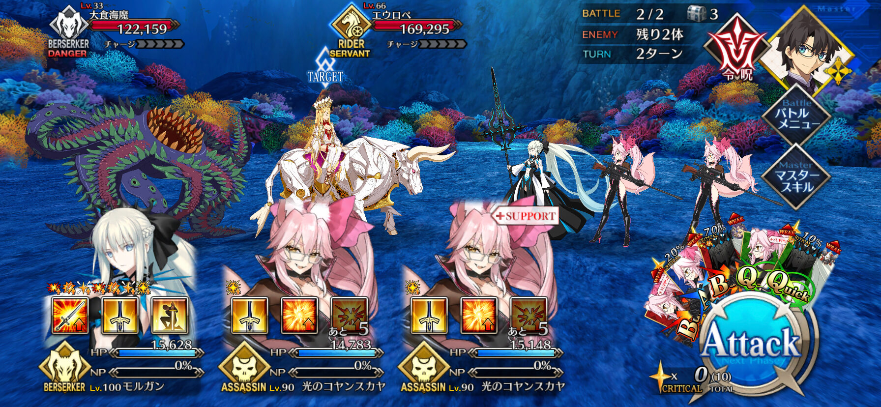 | ・宝具ランク[B+]→[B++] ・宝具威力が強化(450~750%)→(600~900%) ・味方全体のNP付与(10~20%)追加 |