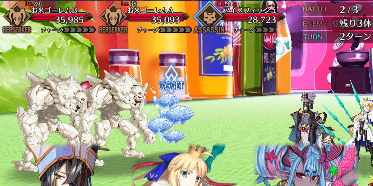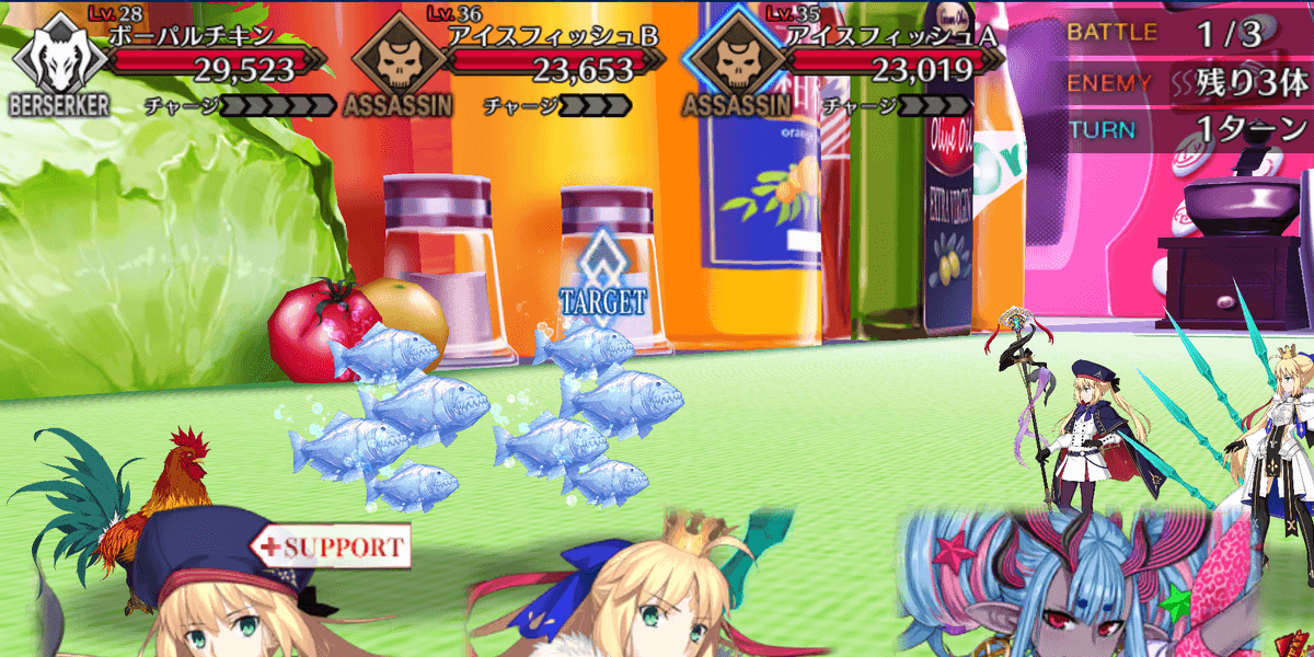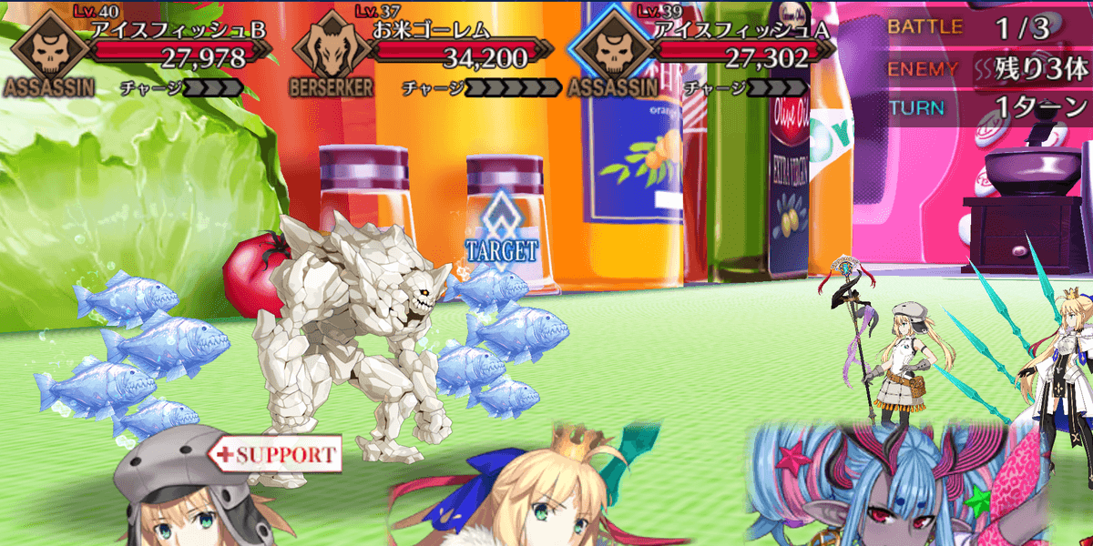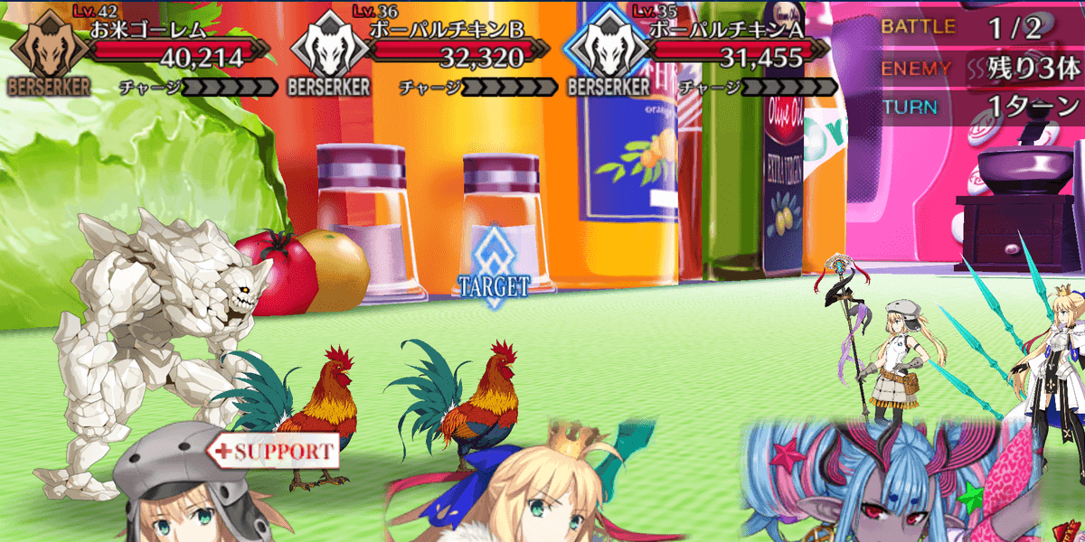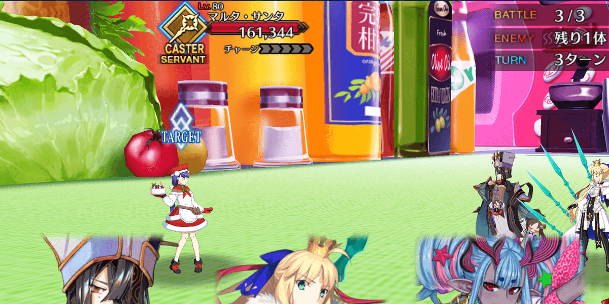 | ・味方全体に火力補助効果追加 ・バスターアップ(3T/10~15%) ・アーツアップ(3T/10~15%) ・宝具威力アップ(3T/10~15%) |