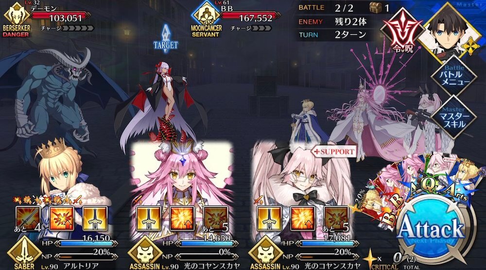 | ・自身に無敵貫通付与(1T)追加 ・宝具威力が強化(300~500%)→(400~600%) ・自身のNPをリチャージ(10%)追加 |