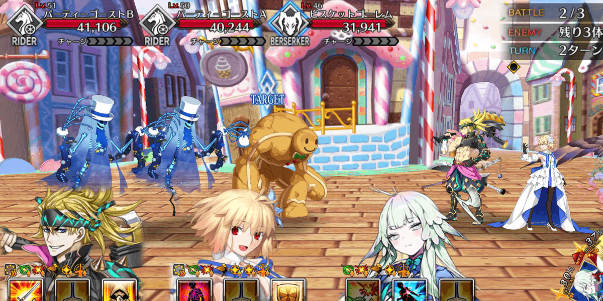 ・霧夜の殺人[A]→[EX] ・Qバフが3ターンに延長 ・宝具威力アップ(3T)追加 ・NP30%が追加 |