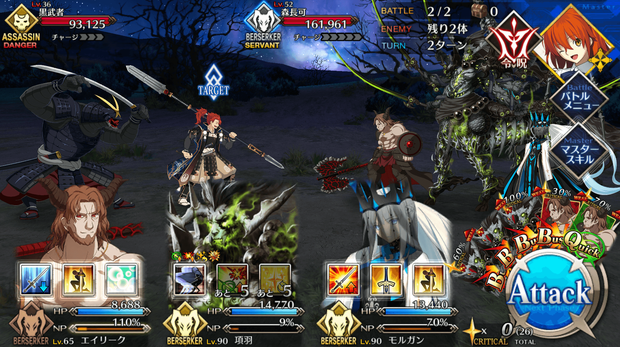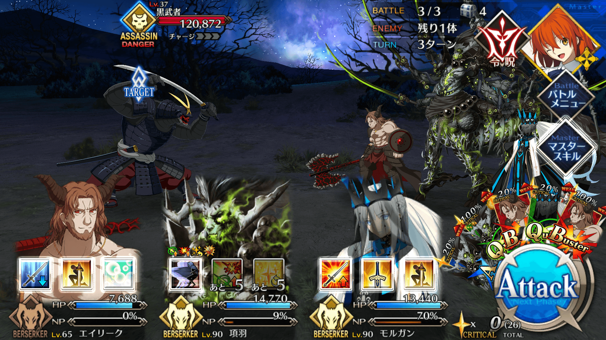 | ・宝具ランク[A]→[EX] ・宝具威力アップ ・敵全体に防御力ダウン付与(Oc 3T/20~40%)追加 ・味方フォーリナーのNPを増やす(30%)が追加 |