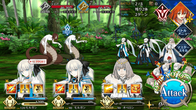| ・宝具ランク[A]→[A+] ・宝具威力が強化 (600~1,000%)→(800~1,200%) ・味方全体へのHP回復が強化 (500~2,500)→(1,000~3,000) ・クリティカル威力アップが追加(3T/20%) |
