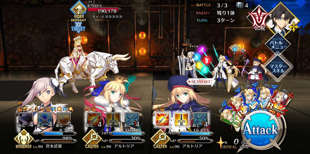 | ・宝具ランク[C]→[C+] ・宝具威力が強化(300~500%)→(400~600%) ・味方全体のB性能アップが追加(3T/20%) |