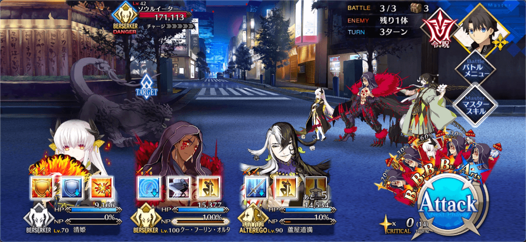 | 開放条件 | ・霊基再臨4回 ・強化クエスト1クリア ・真名を判明させる(亜種1第10節クリア) |