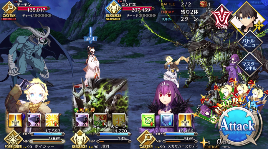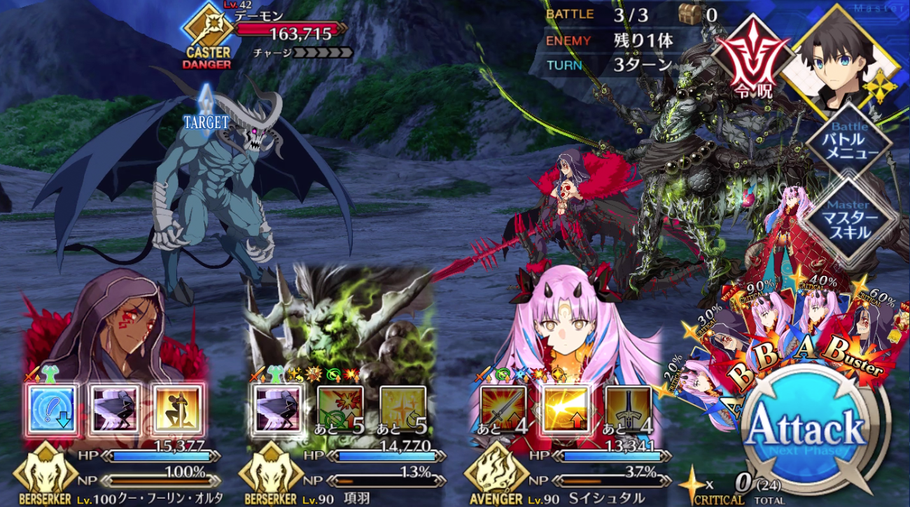 | ・宝具ランク[B++]→[A+] ・宝具威力が強化(300~500%)→(400~600%) ・クリ率ダウンが追加(3T/20%) |