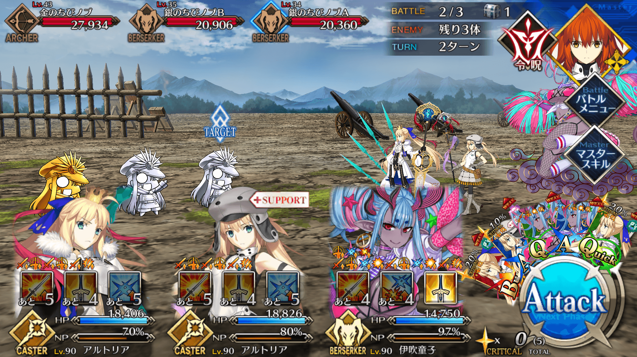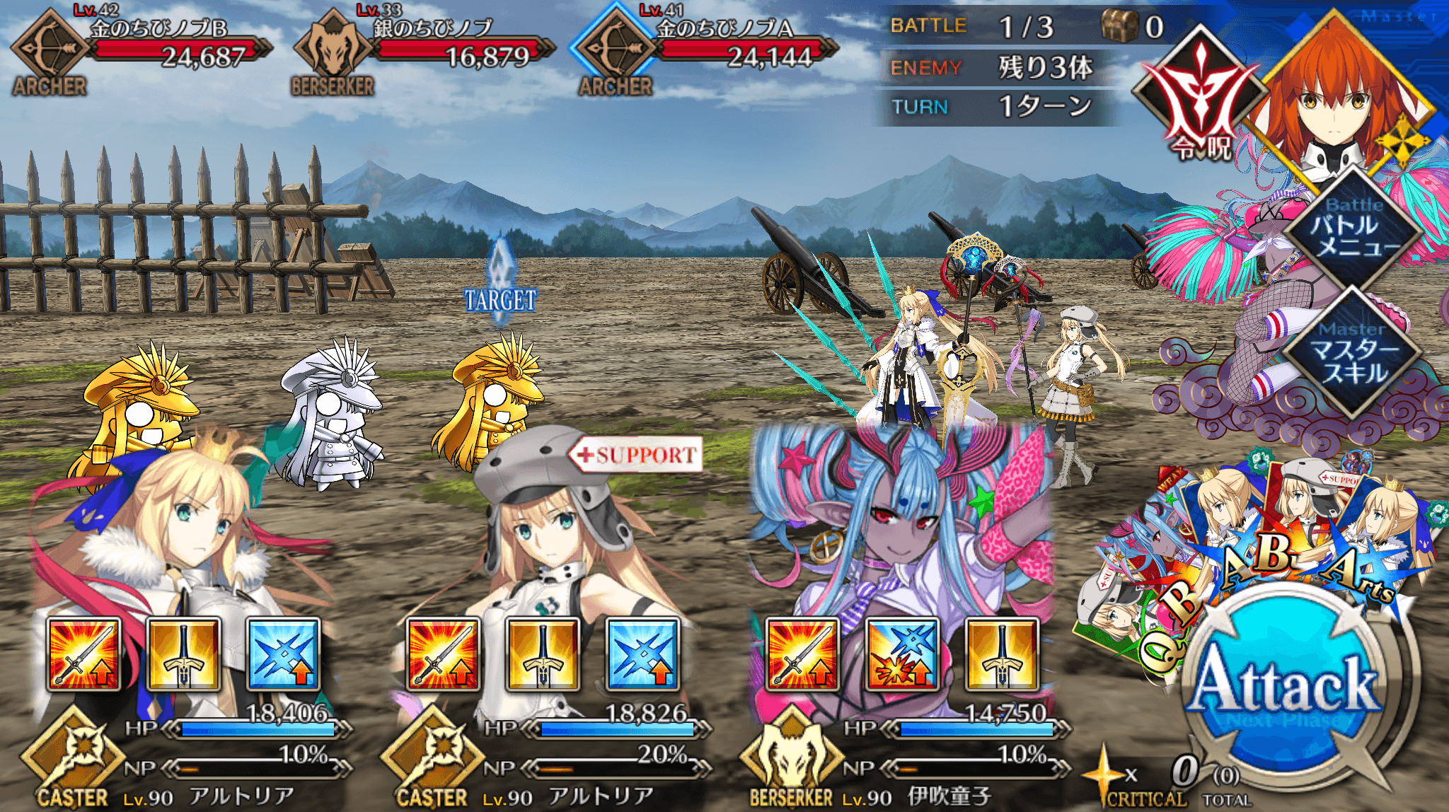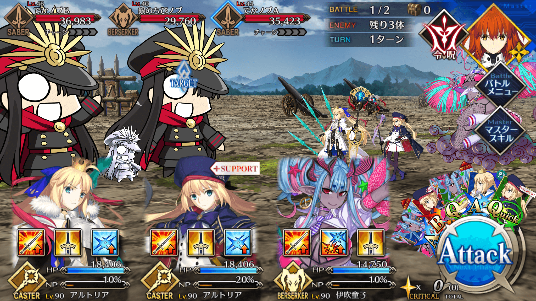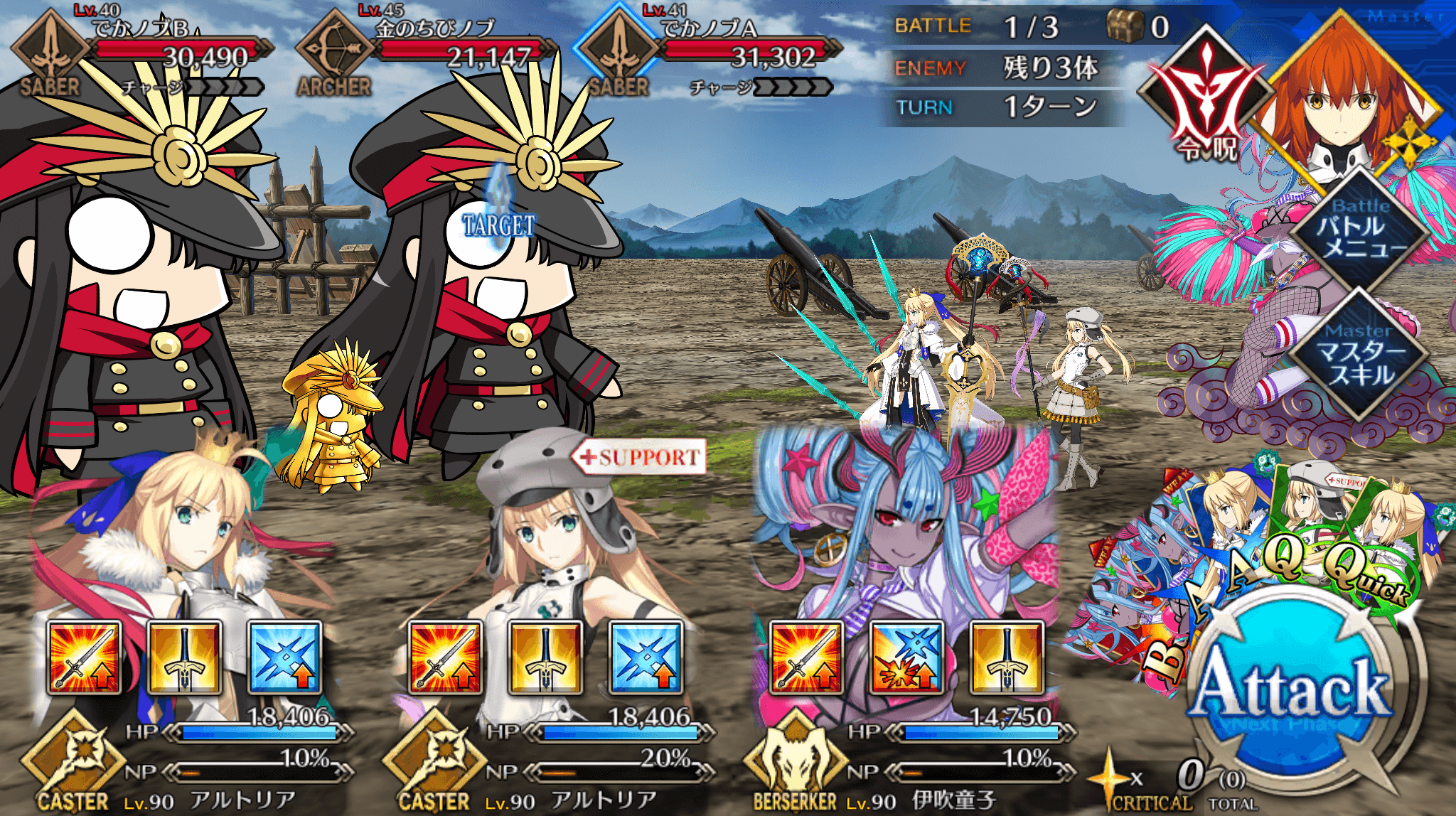 | ・戦略[B]→信長タクティクス[B] ・全体にバスター性能アップ追加(3T/10~20%) ・全体に宝具威力アップ追加(3T/10~20%) |