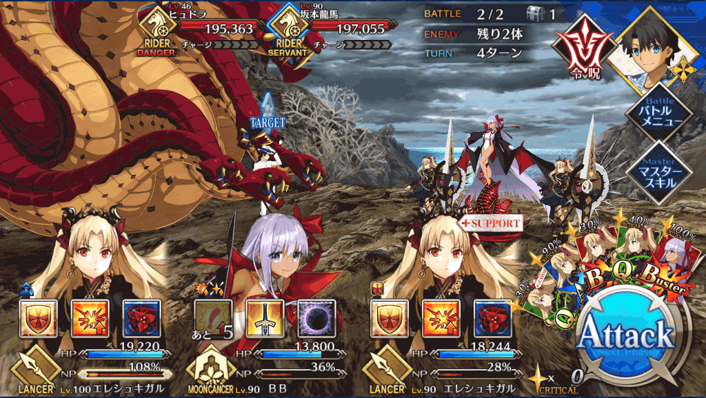 | ・宝具ランク[B]→[B+] ・宝具威力が強化(450~750%)→(600~900%) ・蝕毒が追加(5T/100%) |