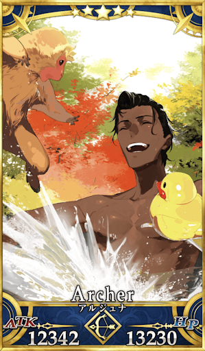 | スキル | ①自身のスター発生率をアップ(3T/30%~50%) ②弱体無効を付与(5T) ①自身のNPをチャージ(25%) ②毎ターンHP回復を付与(5T/1,000~2,000) ③毎ターンスター獲得を付与(5T/4個~8個) ④毎ターンNP獲得状態を付与(5T/10%) ①自身のアーツ性能をアップ(3T/20%~30%) ②自身のバスター性能をアップ(3T/20%~30%) ③宝具威力をアップ(3T/10%~20%) |